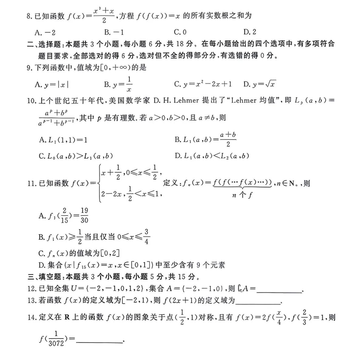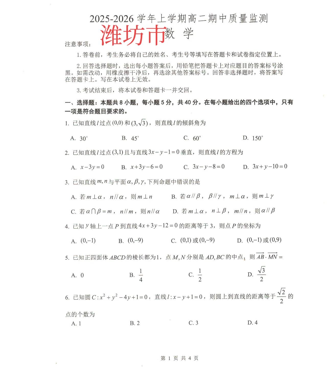 山东省潍坊市高一高二数学上学期期中单选题多选题填空题及其答案。