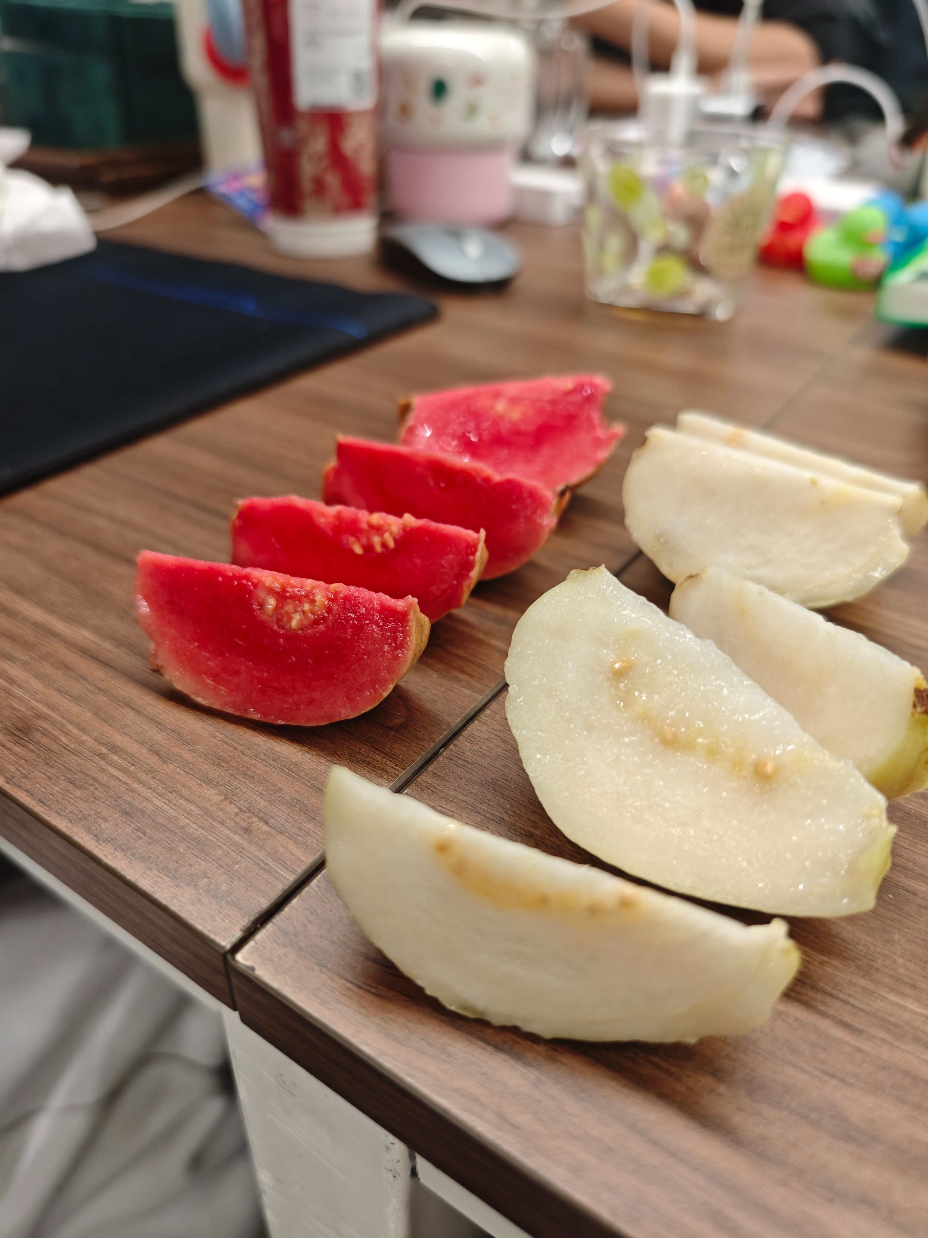 难得上个班妹妹请我吃芭乐,也叫番石榴内蒙人头一次吃,味道有点像百香果+香蕉白色又绵又甜,红色有点点草莓的味道嫂子那边卖的,值得尝尝 北京