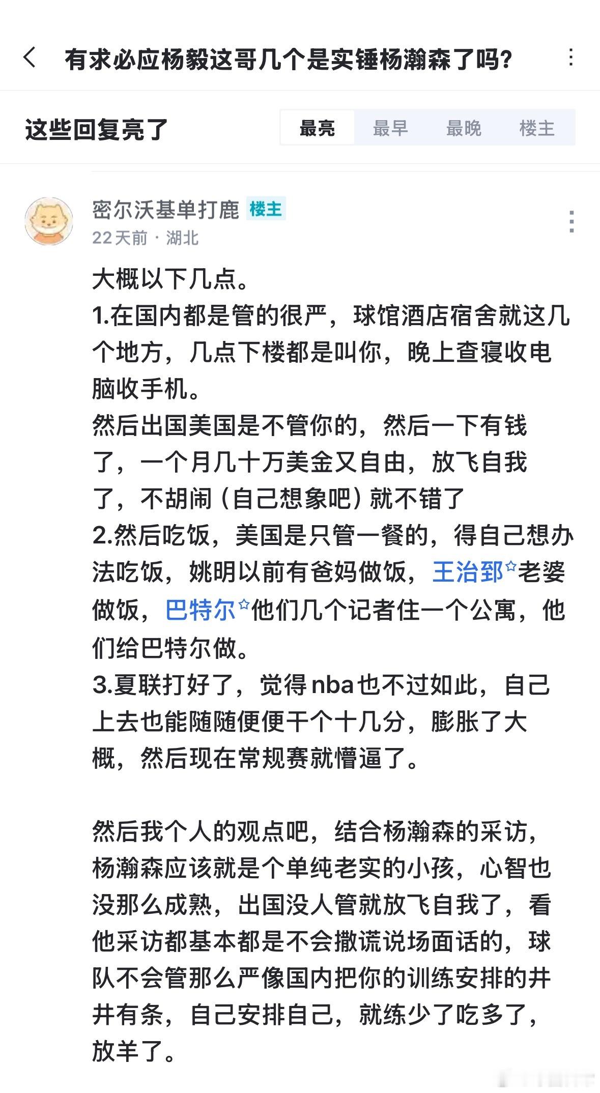 杨毅团队在节目里暗示杨瀚森出国没有人管,变得很懒散。