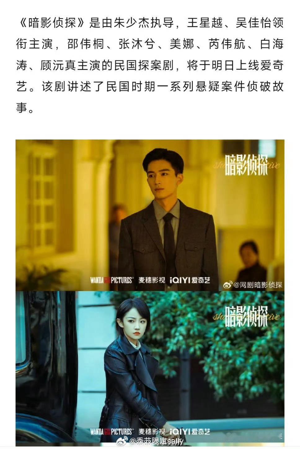 王星越、吴佳怡《暗影侦探》播前招商,24集明日开播
