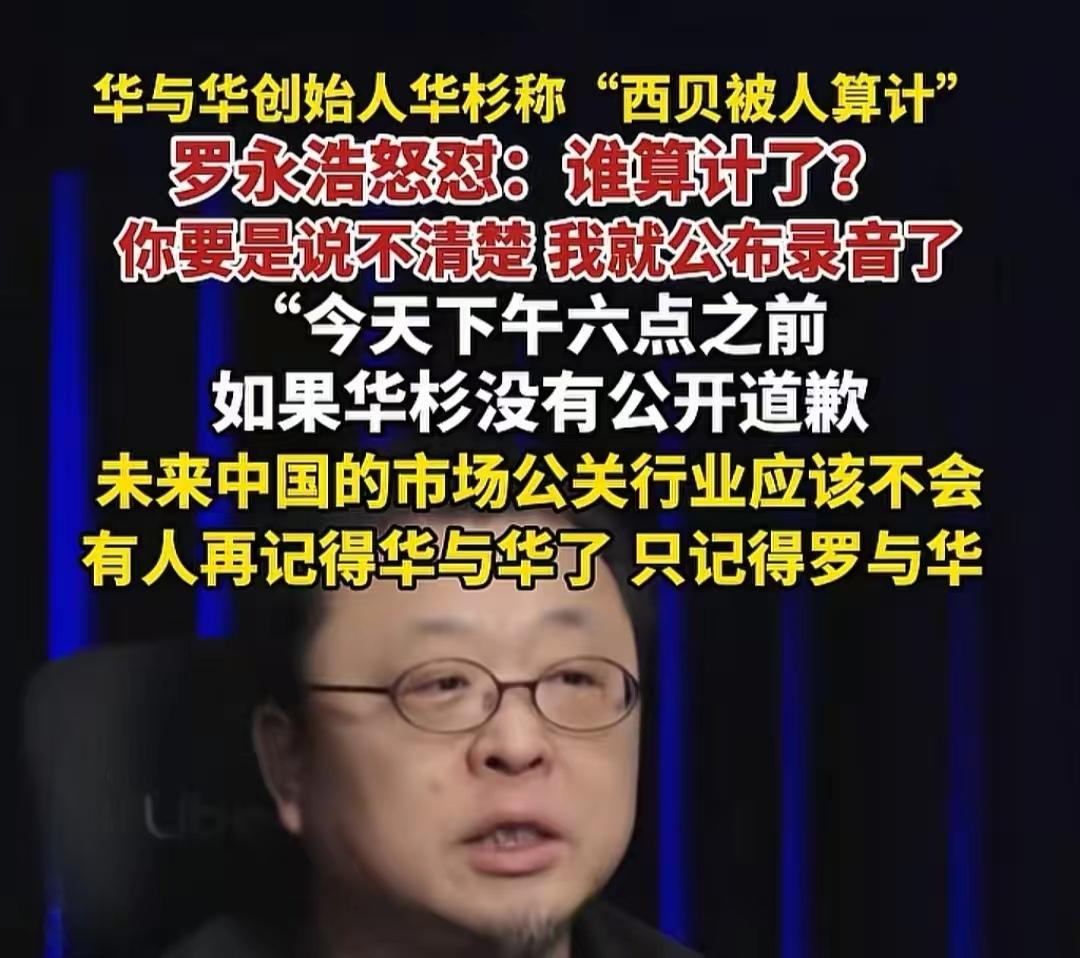 六点已过,坐等吃瓜。罗永浩说过,六点之前华杉没公开道歉,就让华与华这个公关公司消失。公关公司需要给自己公关了,如果连自己的危机都公关不了,那以后确实是得消失了。罗永浩这次千万别手软,如果说伤了西贝会伤到 1.8 万普通劳动者,那伤华与华没有这个负担,这公司就哥俩。[狗头] 华老师语录 华与华 华杉 华与话 华十五周年年会 华道你睡得着吗 华教授 华㓇 华系咨询