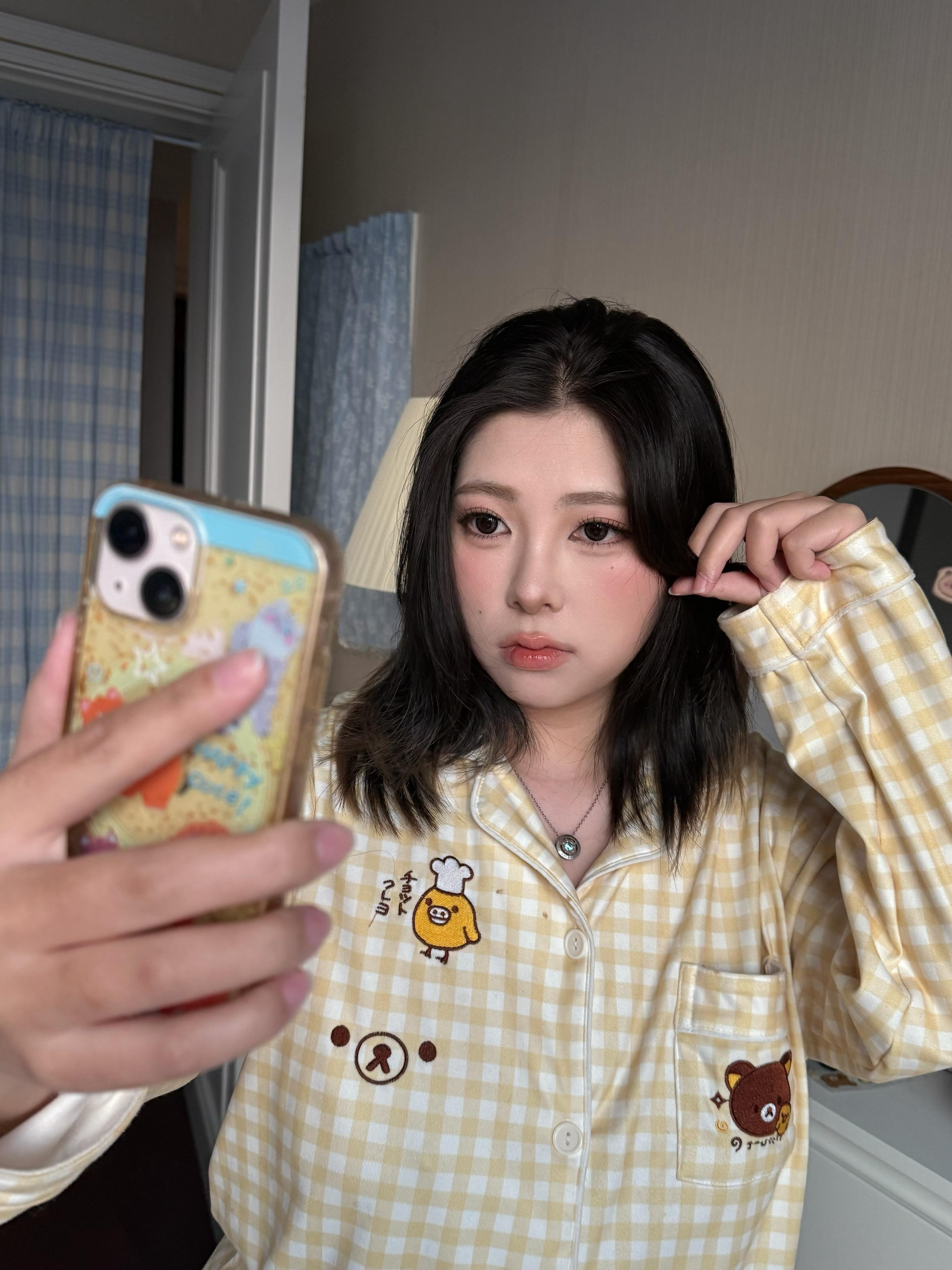 刘海终于长长一点可以拍照了…好喜欢今天的眼妆要卸妆了记录一下!