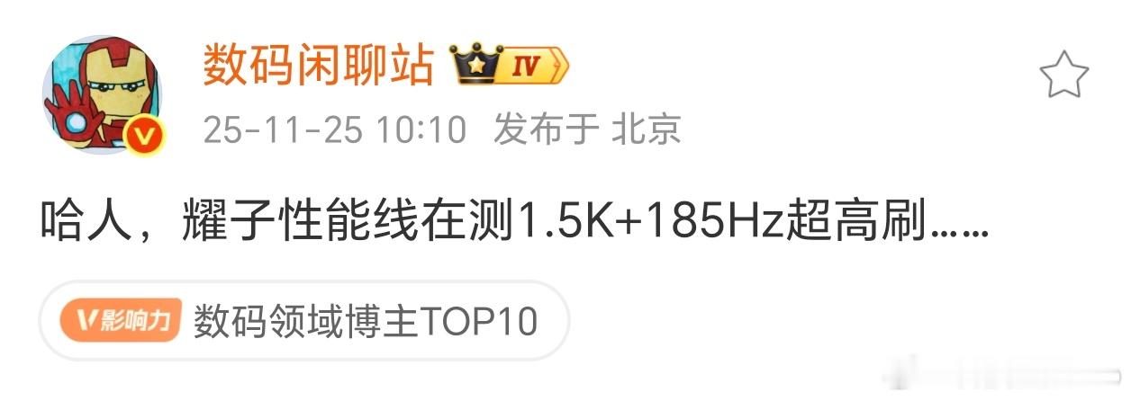 荣耀在测试185Hz的超高刷屏幕?性能线的话就是GT系列了吧,感觉应该不会太快落地