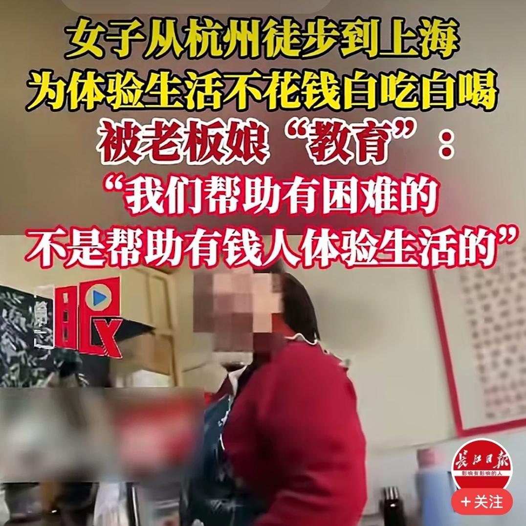 女子为体验生活,从杭州步行去上海,计划一路上不花钱,白吃白喝。在一个小餐馆提出吃