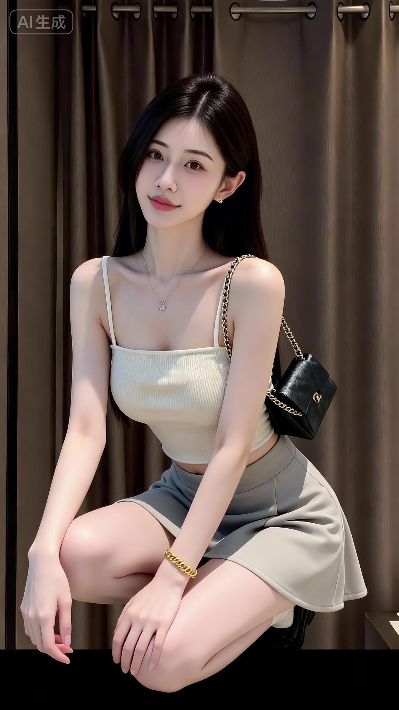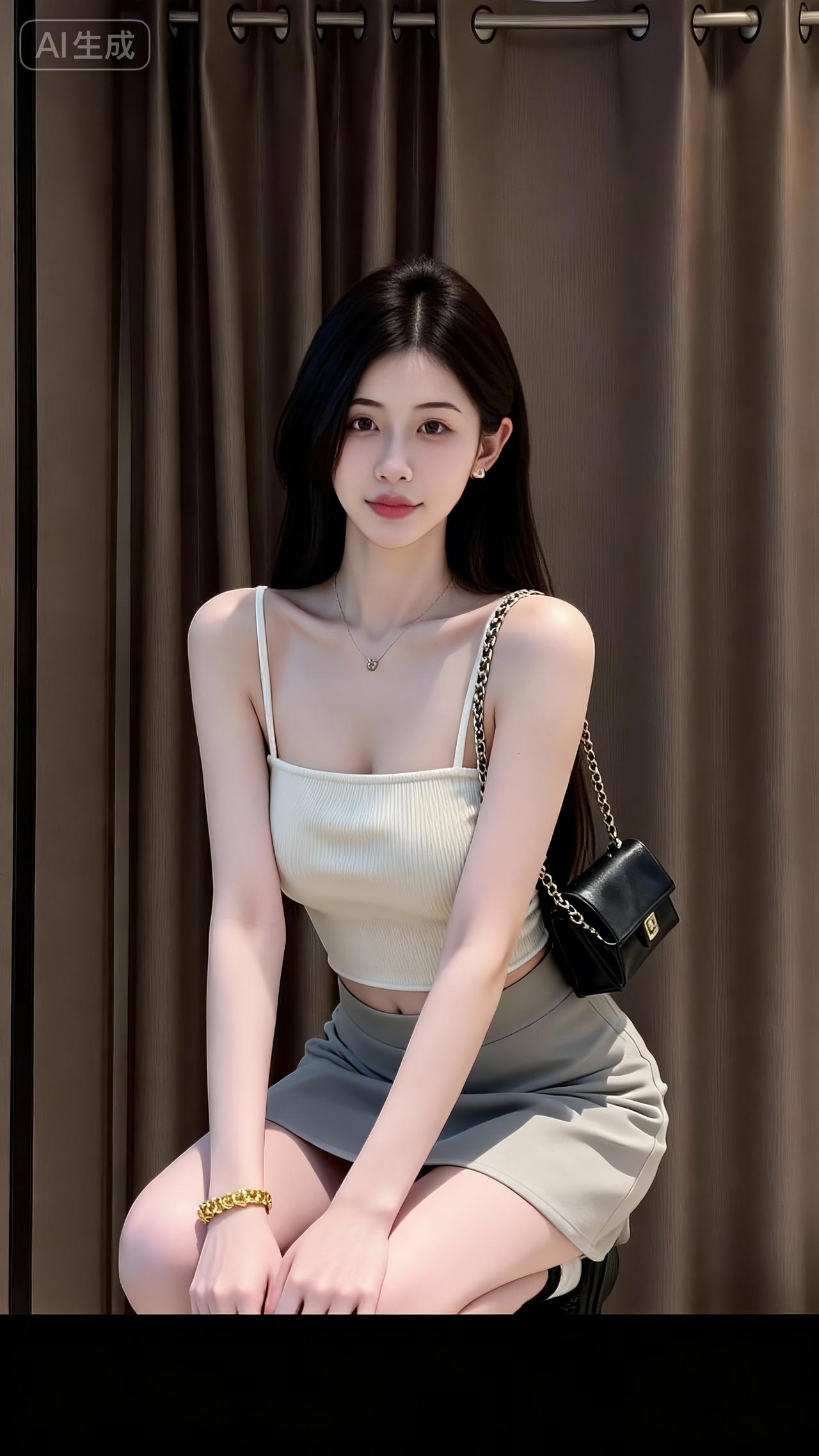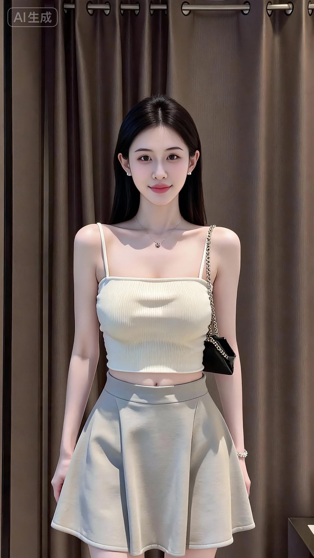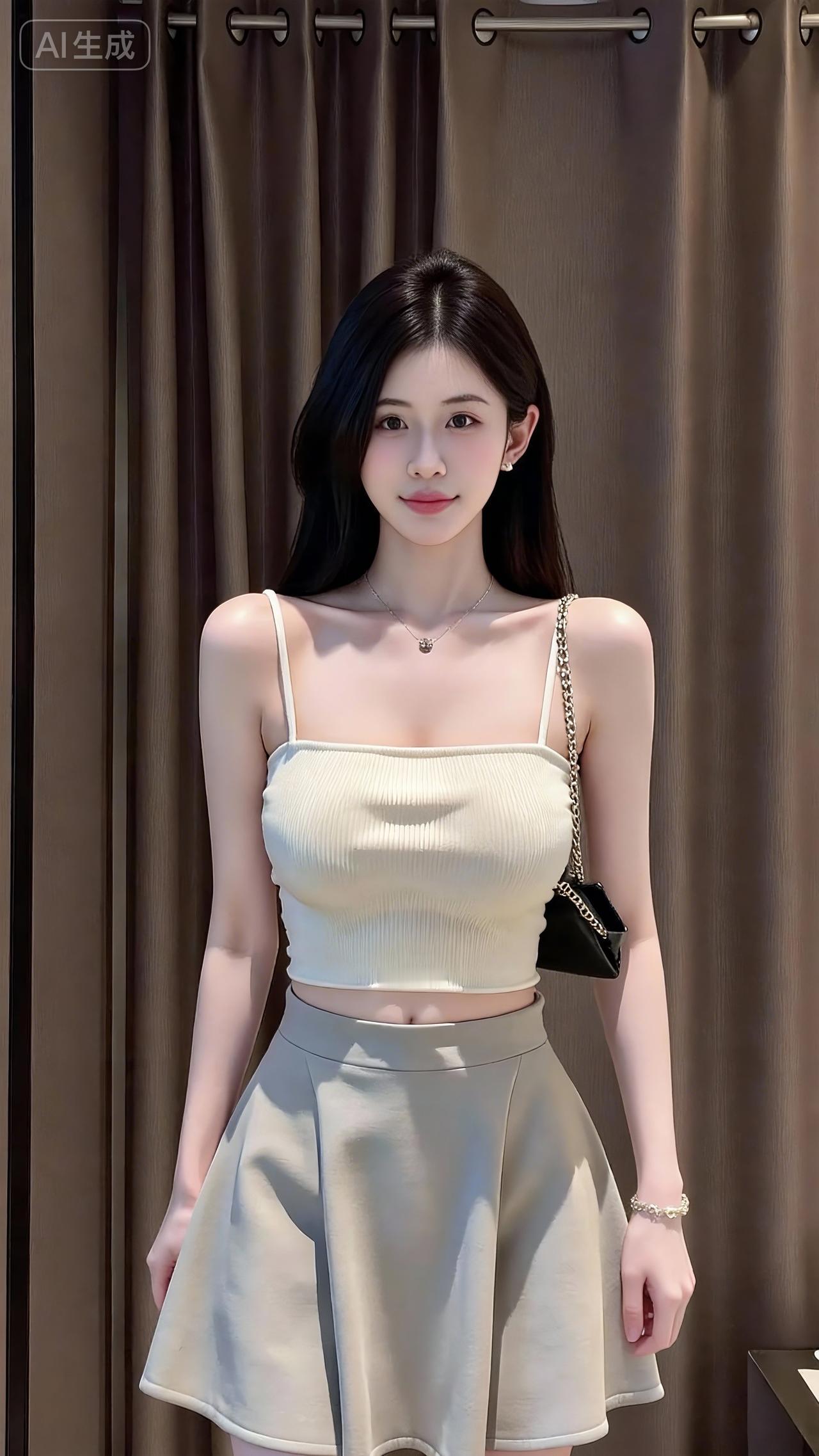 室内甜妹,奶白吊带上衣配灰伞裙,纯欲时尚氛围感拉满灰色吊带包臀裙 紫色吊带套装裙 灰色抹胸裙穿搭