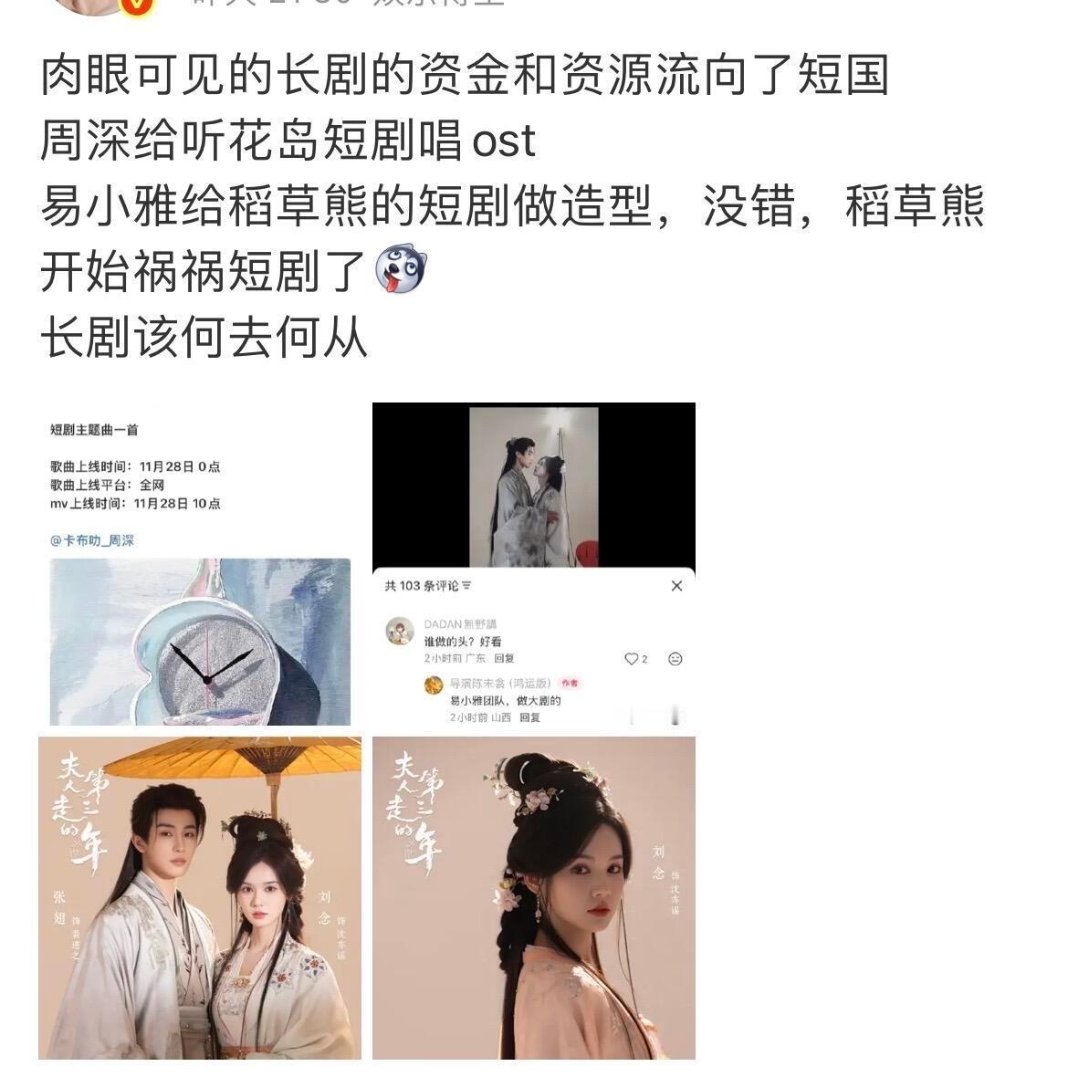 周深为短剧唱ost资金都流向了短剧,看来短剧是大势了 长剧该何去何从呢