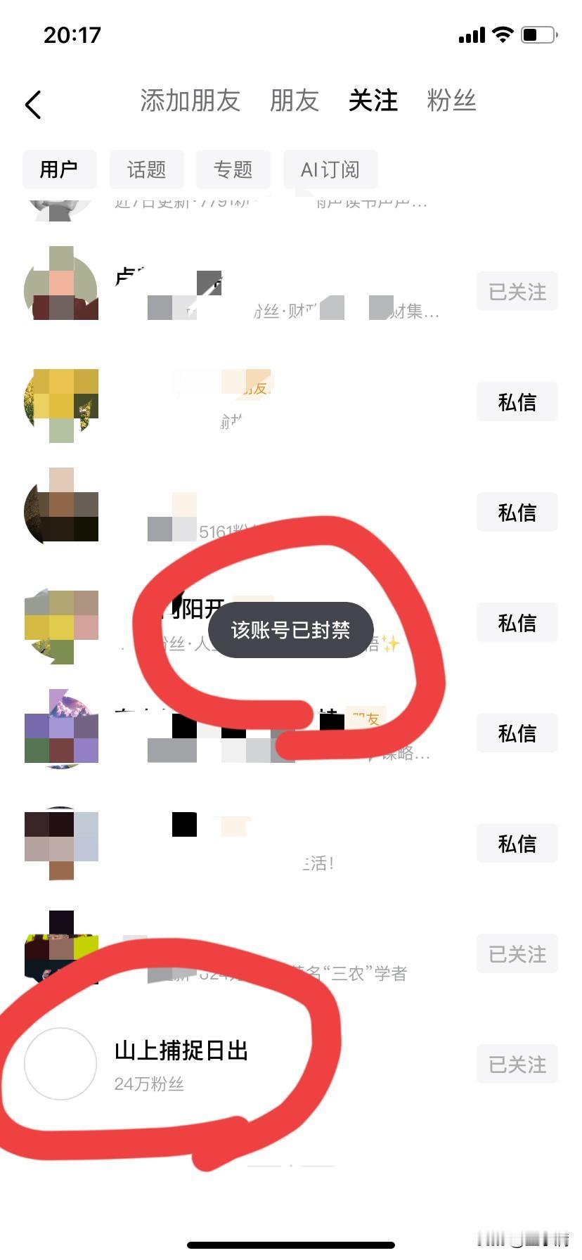 江婉意被封禁了吗? 我今天想看看她最近在写什么,去关注列表里找她,结果有个不认识的账号,还郁闷我什么时候关注了“山上捕捉日出”? 虽然不认识这个号,但是粉丝还不少24万呢!结果点击头像,系统显示“该账号已封禁”。啊,奇奇怪怪是怎么回事。 接着找江婉意,没找到,在平台搜索也没找到。换名字了吗?结果看到很多人有同样疑问,搜索词都是:江婉意注销账号了吗?江婉意的头条主页等搜索词。 尝试搜索该用户也找不到,就想起自己关注这个被封禁24万粉丝的号,好像我确定了自己当初就是关注了她,她的粉丝也是二十多万。 那就是她无疑了吧。那是什么原因被封禁了呢?她的账号阅读量、点赞量、评论量也是不低的,还晒过收益,一篇文章几千块钱呢! 被封禁了好可惜呀!而且她写的文章很能引起读者共鸣呢! 江婉意