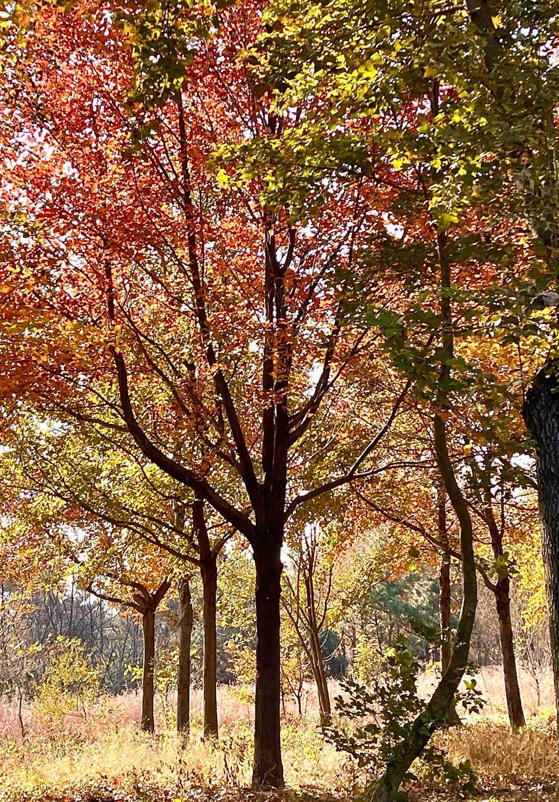 这组照片是今天在东海 李埝林场拍摄的照片? 总体展现了苏北东海李埝林场秋冬季的多样风情,是一幅由森林、田园、动植物共同绘就的秋日生态画卷。 画面里,林场的森林景观极具特色,既有叶片呈现红、黄、绿渐变色彩的树木,在阳光映衬下如天然油画;也有枝干光秃却姿态苍劲的树木,枝头停歇的鸟儿为其增添灵动。林间还可见成群的山羊,与游客形成有趣互动,尽显林场的生机与野趣。 远处,风力发电机在开阔的草场上矗立,与金黄的草地、错落的树林构成一幅现代与自然交融的画面,展现出林场在生态与能源利用上的融合之美。还有挂满白色果实的树枝,在蓝天的映衬下,呈现出别样的秋日景致,凸显出林场植物种类的丰富多样。 李埝林场森林覆盖率极高,拥有黑松、刺槐等众多树种,秋季时层林尽染,是苏北地区赏秋的绝佳去处之一,这些照片正是其秋日魅力的生动缩影。 (图文陈士健 )