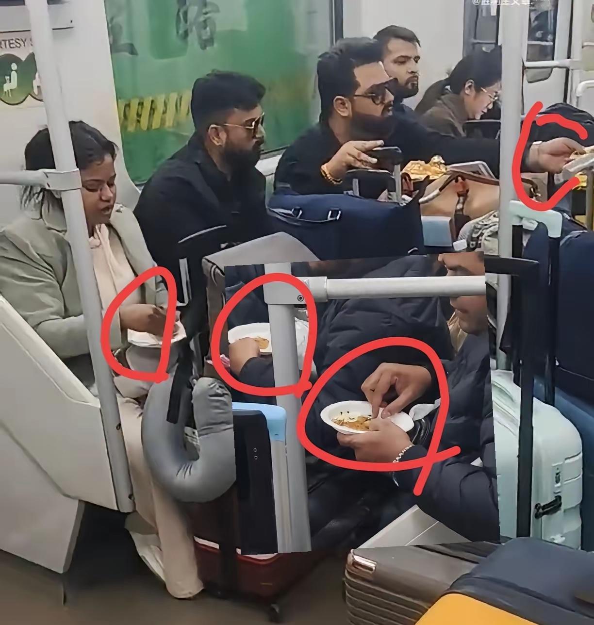 上海地铁这次的事情有点让人看不懂了。 车厢里几位外籍乘客围坐着用手抓饼和米饭,咖喱味飘满整个车厢。其他乘客只能往旁边挪或者捂住鼻子。根据规定,上海地铁车厢内是禁止饮食的,违反者可能面临警告或罚款。 有网友推测事情发生在2号线凌空路站附近,上海地铁随后确认了是在2号线。地铁客服回应说,如果乘客有进食需求,可以下车在站台上吃,或者向工作人员求助。 车厢里通常没有工作人员巡视,遇到这种情况,乘客可以联系车站工作人员或拨打服务热线反映。问题是,为什么当时没有人出面提醒或制止。可能大家觉得对方是外籍人士,担心沟通问题或引发不必要的麻烦。 地铁是一个封闭的公共空间,食物气味会影响他人,残渣可能造成卫生问题甚至安全隐患。规则摆在那里,就需要每个人遵守,不论来自哪里。本地乘客在车厢里吃东西也会被劝阻,这次的事情也一样。 公共环境的维护需要每个人的自觉,也需要管理方更及时的介入。