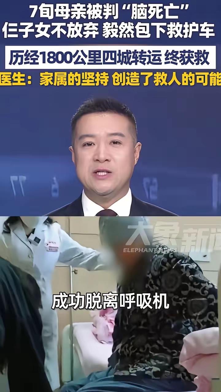 75岁老人脑死亡被判无望,子女砸4万跨1800公里转院,硬生生把奇迹拽了回来!甘肃老人颅内出血陷绝境,医生劝做好后事准备,子女偏不放弃,包救护车跨四城转西安,直言钱没了能赚,妈没了就真没了。 到西安时老人靠呼吸机续命,女儿跪地求治,医生动容定制方案,历经一月救治,老人从无意识到能缓慢行走,孝心硬生生扛住了死神。所谓奇迹从不是凭空降临,是子女不放弃的执念,是亲情凌驾金钱的坚守,这份把亲人放在首位的心意,比任何医术都有力量。 如今太多人被现实裹挟轻忽亲情,这份咬牙坚持的孝心,才是最珍贵的人间暖意。 你身边有过亲情创造的生命奇迹吗?这份孝心是否戳中了你?