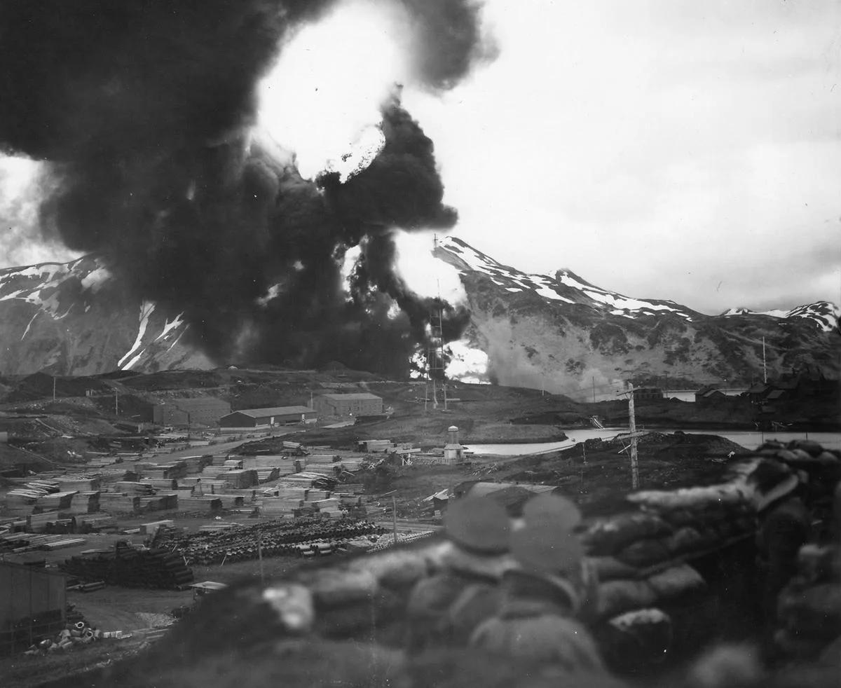 日本对美国的空袭,应该算是本土了吧——1942年6月3日,一支日本航母打击群对美国阿拉斯加州荷兰港的荷兰港海军基地与米尔斯堡发起了为期两天的空袭。 荷兰港海军基地是美军在阿拉斯加州阿留申群岛的核心军事港口,二战期间承担北太平洋反潜、巡逻及补给任务,是连接北美与亚洲太平洋航线的关键军事节点。 米尔斯堡是荷兰港配套的陆军防御要塞,与海军基地形成 “港 - 堡联动” 的防御体系,部署有岸防炮、高射炮及地面守备部队,专门负责抵御对港口的地面及空中攻击。 这次空袭是日军1942年 “阿留申群岛战役” 的开篇。日军的战略目的是牵制美军太平洋舰队兵力,分散中途岛海战的美军注意力,同时试图夺取阿留申群岛的阿图岛、基斯卡岛作为前进基地。 那么,现在问题来了——请看图4,画面最右侧的士兵手持一支步枪,请问该枪的型号?(参见图5)