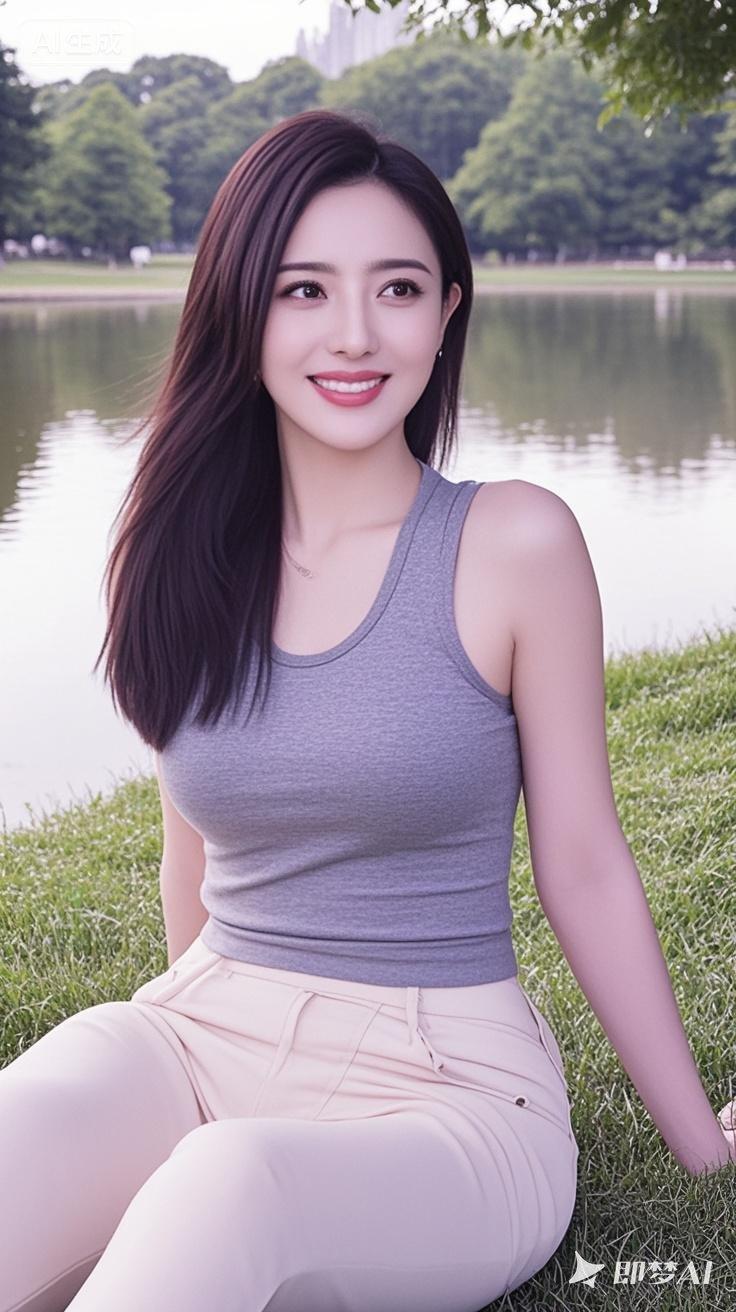 夏日清新少女,蓝宝石项链点缀,自然背景下的甜美笑容。