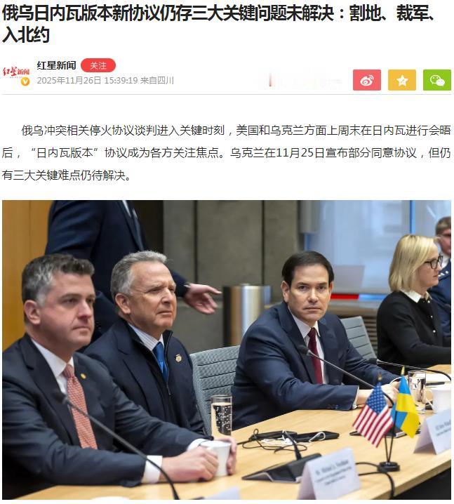 美国提出“28点计划”,但和平依然遥遥无期!——乌方公布了在和平进程中三条不可逾越的“红线”(不承认领土被占领、不允许被剥夺自主选择未来联盟的权利,以及不接受对本国国防力量的限制);马克龙认为特朗普俄乌和平计划仍需完善,俄乌停火后法国拟向乌派兵;欧盟和欧理会也想上桌——最后俄罗斯把桌子一掀:继续打,直到达成一切预期目标!