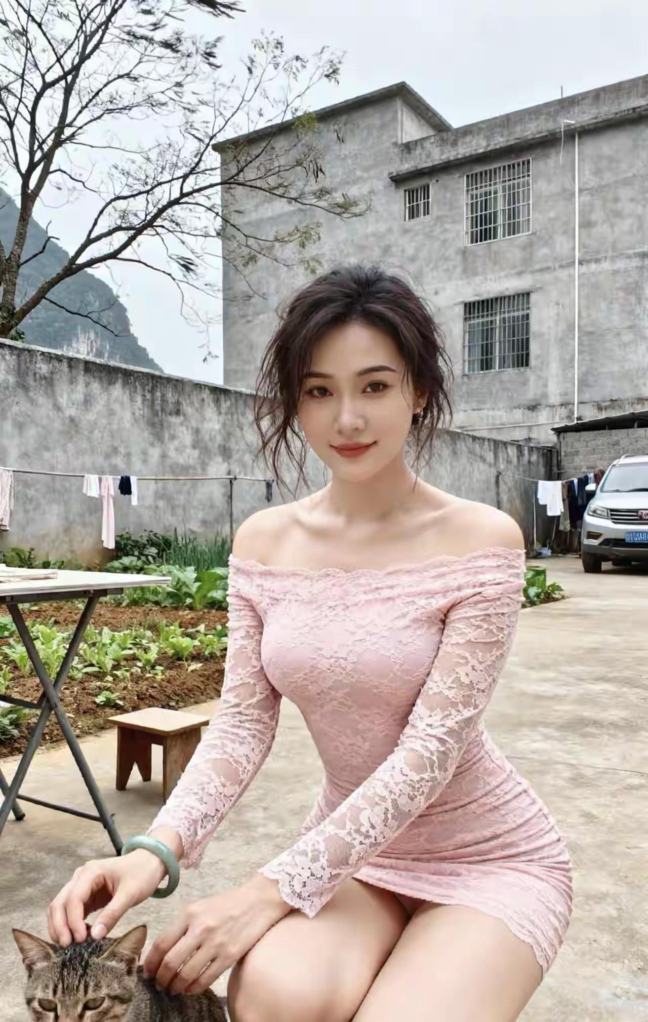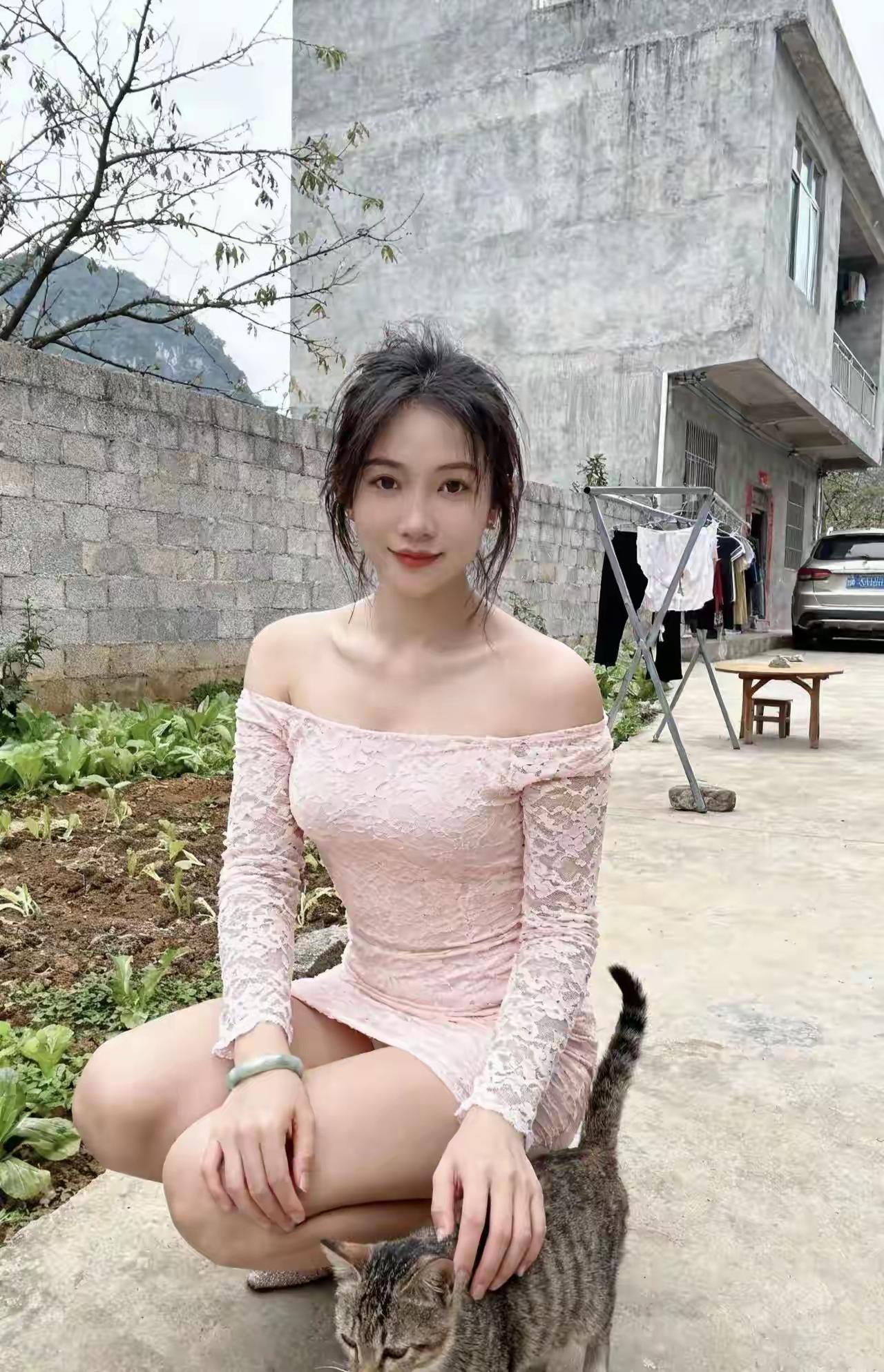 《山间漫步》💕自然清新美少女的宁静与美好。她身着米白短上衣与浅蓝牛仔裤