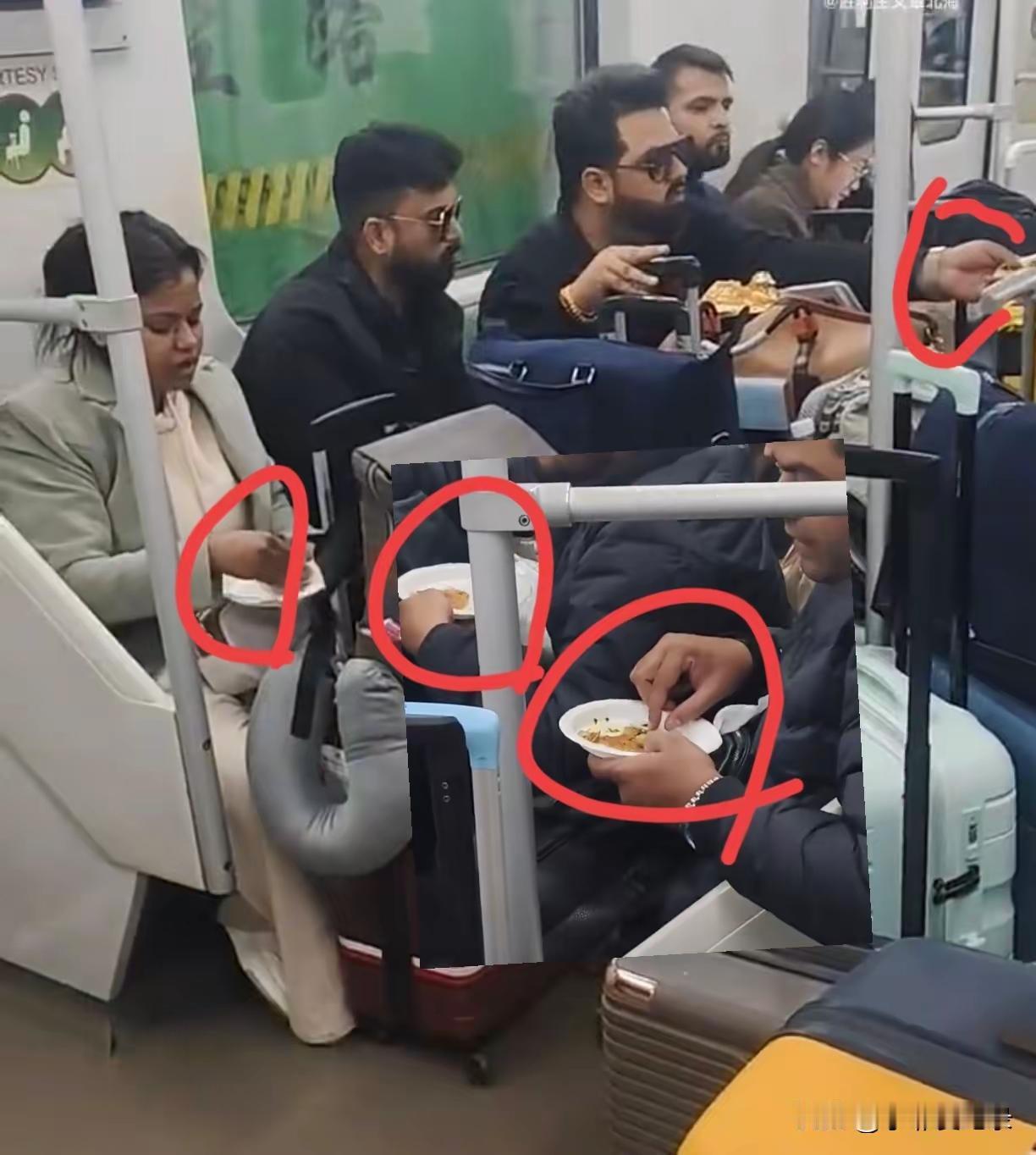 一群印度人在上海地铁吃手抓咖喱饭,这照片风靡互联网。从网传照片来看,地铁上没有工作人员来制止他们。这个确实是个难题,虽然印度的官方语言是英语,上海地铁的工作人员应该懂英语,但架不住这群印度人装作听不懂英语,所以作为地铁的工作人员,面对外籍人员的时候,很多都会装作看不见,因为对他们没有什么有效措施。 现在网络上有一股反对印度人到中国浪潮。而背后的原因主要有四个:一是印度人的习惯,喜欢拖家带口地前往移民国;二还是印度人的习惯,印度人喜欢不加选择地小便,用手吃饭,做事情都很随意;三是印度人无法同化,其他国家的移民还可以同化,但是印度和我们都是四大文明古国之一,对自己的文化都高度自信,很难很难同化;四是大家都很担心印度人来抢占我们的工作机会,不论高端的还是低端的。 虽然现在有这股风气,但是我们对印度的签证数量是在增加的,大家可能会看到越来越多的印度人,以及越来越多奇葩行为,习惯就好。 当然,我个人预测,我们不会是印度主选的国家,因为日本有政策要引进印度人,还有以色列也有打算要引进几十万印度移民。大家尽管放宽心!