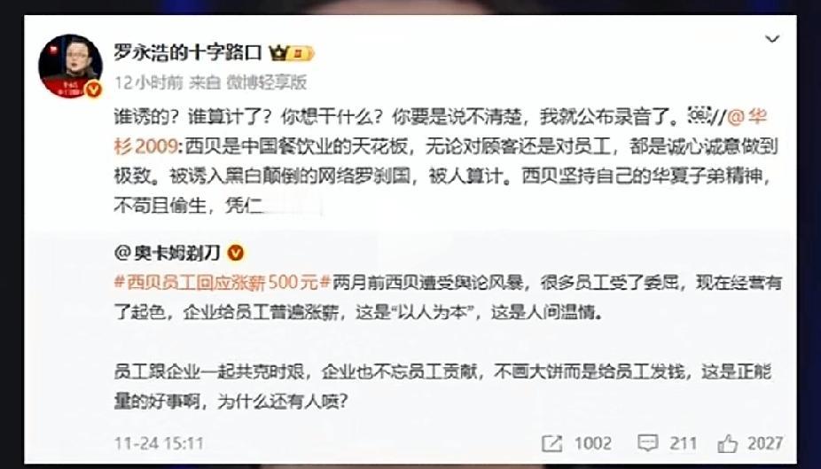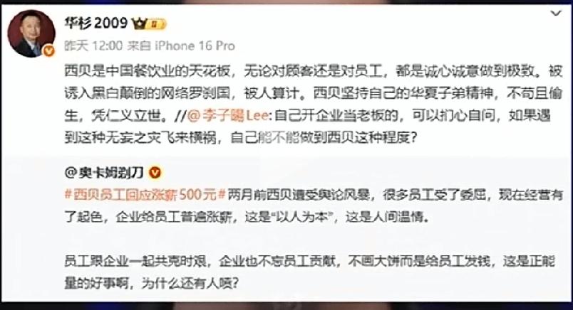西贝预制菜风波眼看快要平息了,华杉突然又跳出来,暗戳戳、阴阳怪气的说西贝被人算计,被诱入黑白颠倒的罗刹国……华杉说这话可能只是想表明立场,给西贝洗洗白,正正名,但是他千不该万不该,把责任往别人身上推,把屎盆子往别人头上扣,况且那个人还是敢怼天怼地的长胜将军罗永浩,罗永浩一个微博三连问,我知道华杉完蛋了,踢到铁板上了,罗永浩可不是谁都能随意编排,随意抹黑的,做好心理准备吧,有可能你比西贝早走一步!
