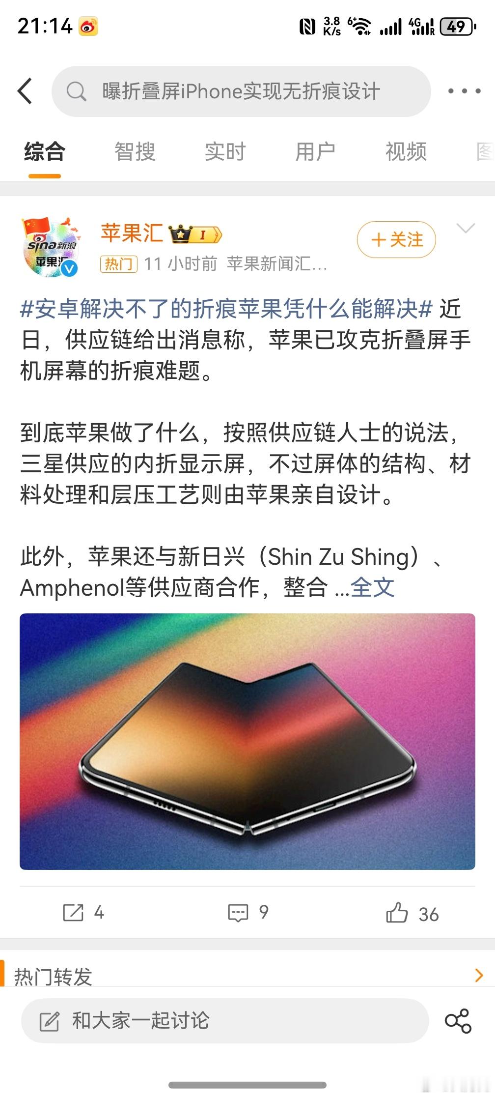曝折叠屏iPhone实现无折痕设计 ,没啥意思,这几年该有的新创新其他厂商都试过了,其实最根本的问题还是价格问题以及生态问题,苹果的生态倒不用担心,担心一下价格吧。