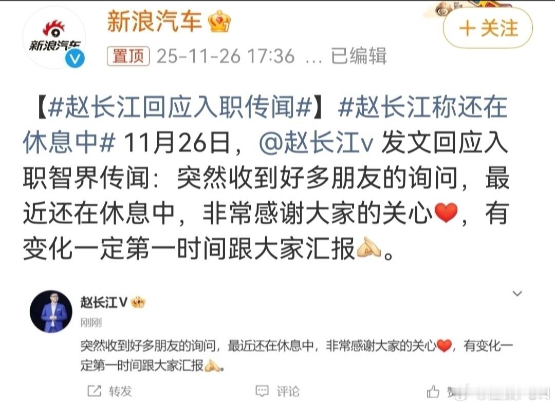 赵长江回应入职传闻 没有否认就是承认了,作为首批智界R7车主,我觉得智界会越来越好的!