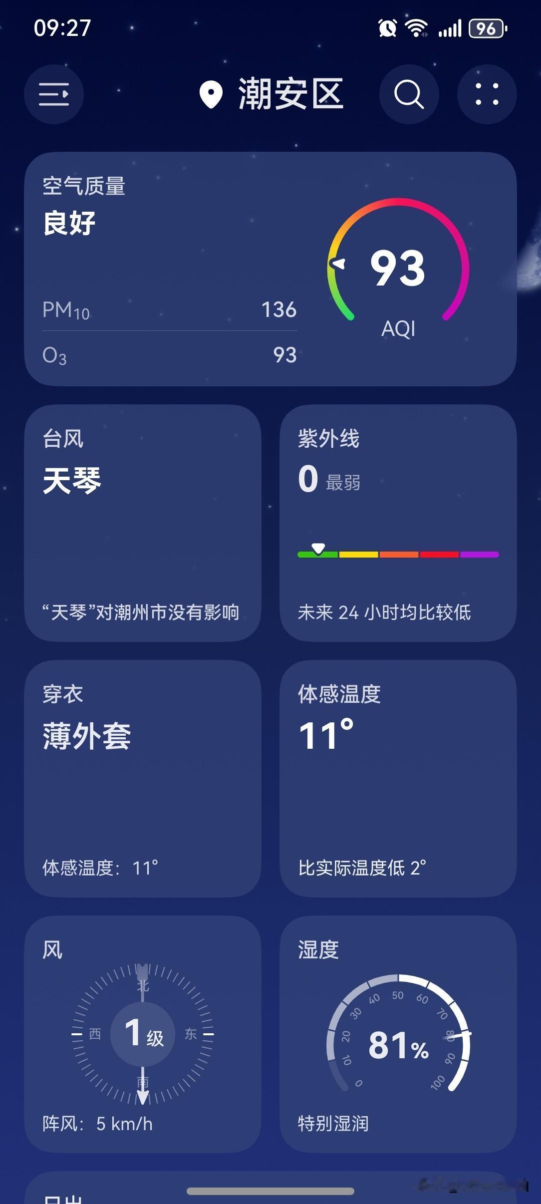 快12月了还有台风?第27号台风"天琴'已生成,对广东省海面和陆地无直接影响! 广东今明两天弱冷空气补充到货!11月26日夜间到明天,广东有弱冷空气补充影响,北风将有所加大,但降温幅度相对较小,白天有阳光加持,早晚体感寒凉,昼夜温差大。 广东未来几天早晨晴空辐射降温都比较明显,粤北部分市县将有5℃以下低温;其中,11月28日早晨大部分市县将达到过程的最低温,28~29日早晨粤北部分市县有霜冻。 今天(26日),潮州喜提一个晴天。气温10~23℃,此刻气温13℃,体感11℃。 今天早上起来凉飕飕的,白天太阳升起后,气温快速上升,最高气温达23℃,依然是暖和的一天! 最近的天气都是这样,白天暖洋洋,早晚凉飕飕,昼夜温差大,大到什么程度呢?大到中间隔着“夏秋冬”三个季节。早晚过着冬天,白天大部分时间过着秋天,中午气温最高时段又过着夏天,一天之内体验了夏秋冬三个季节,大概这就是广东天气的特色吧! [我想静静][捂脸][我想静静][捂脸][我想静静][捂脸][我想静静][捂脸]