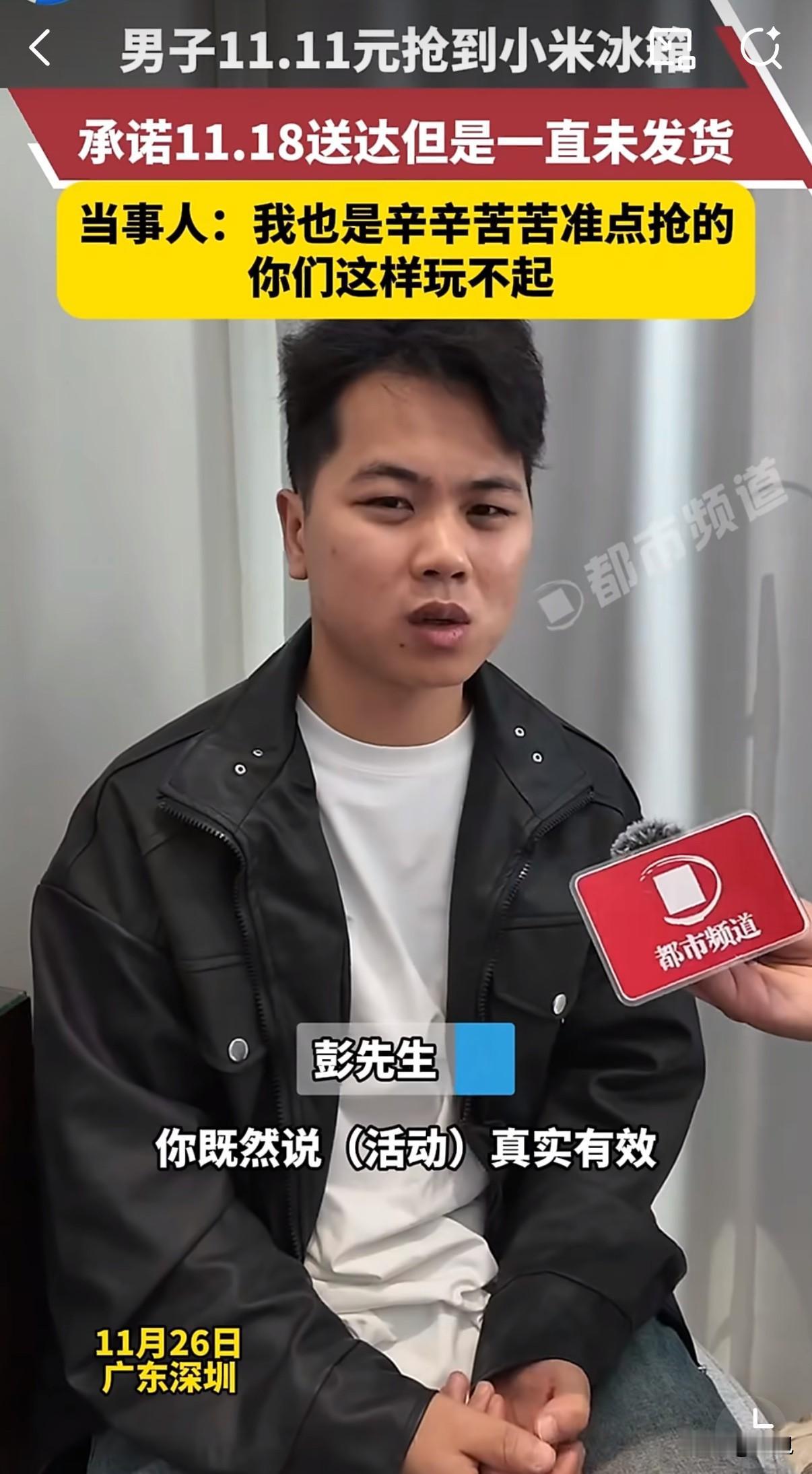 11元抢到小米冰箱,商家一句"系统错误"就不发货了! 双十一那天,广东的彭先生