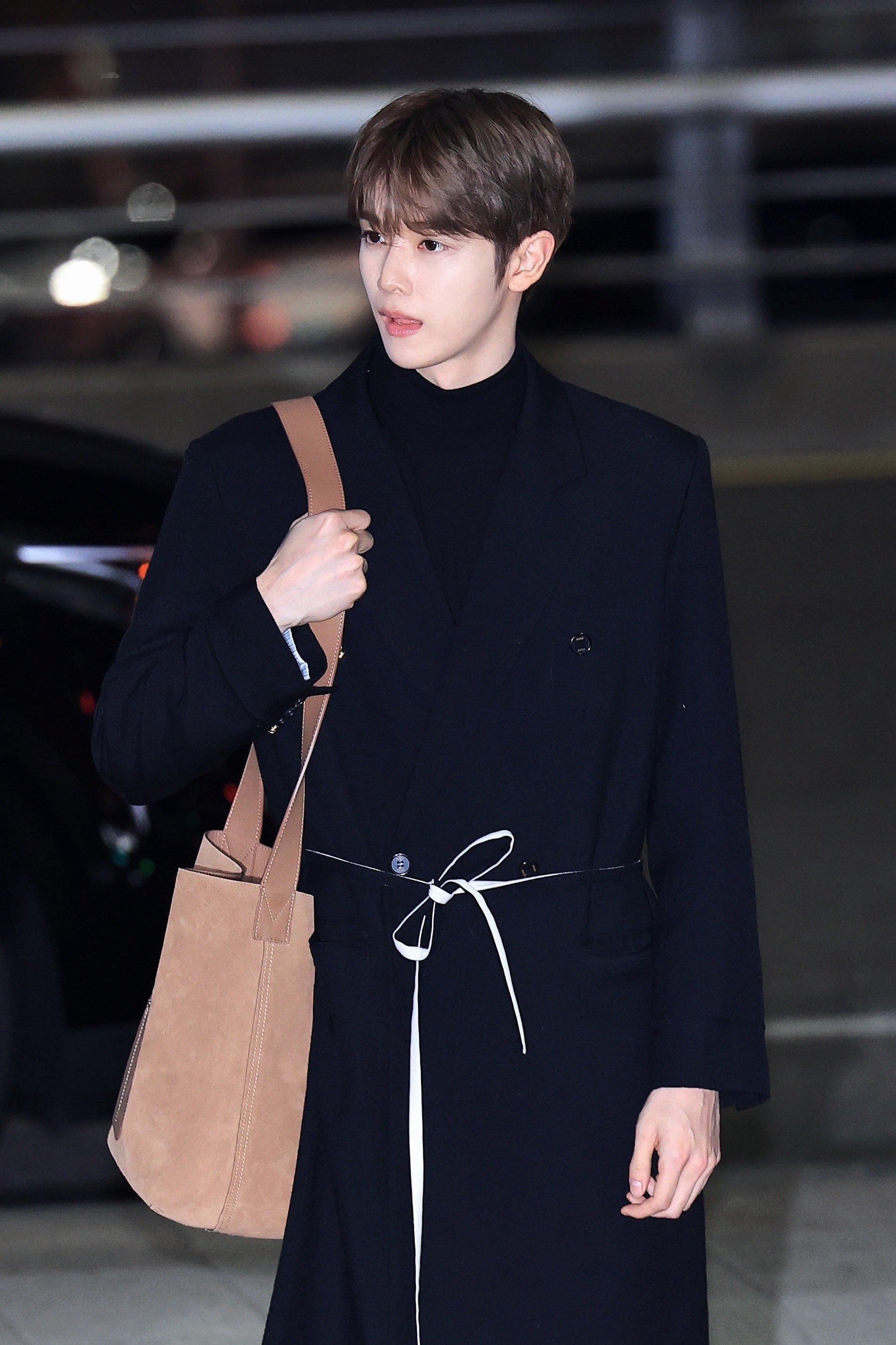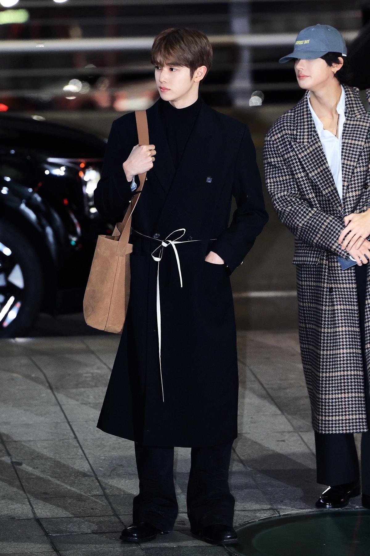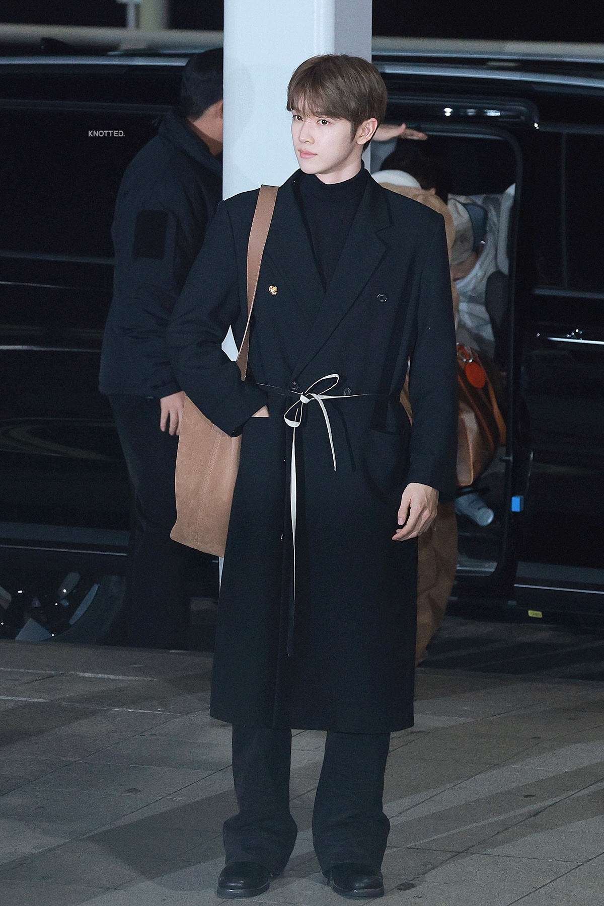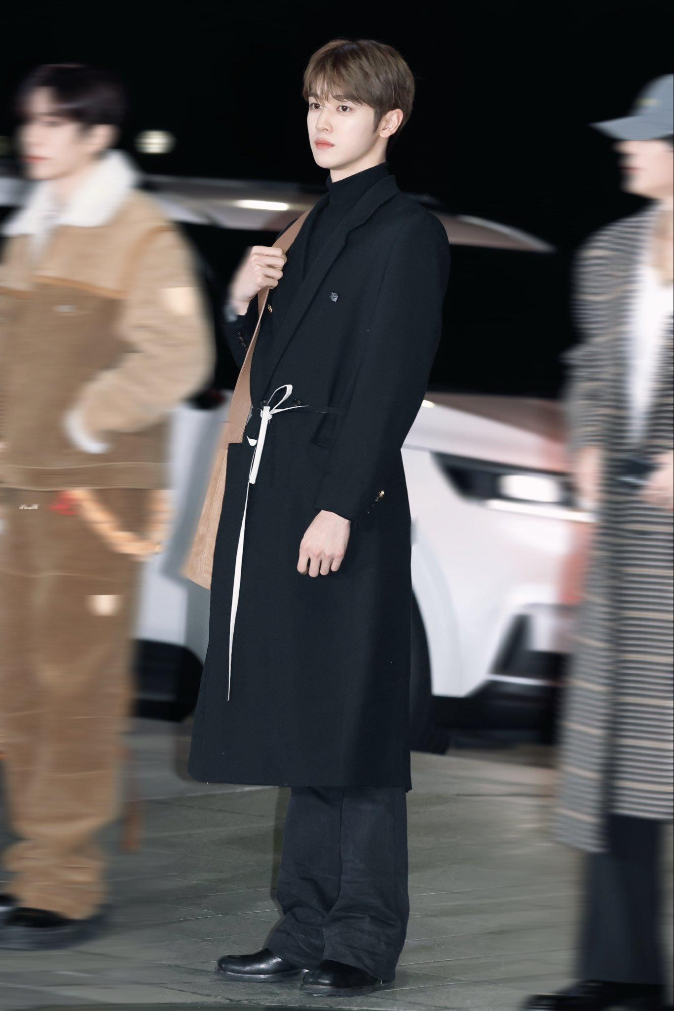 今天出发去MAMA的成灿,黑色长大衣!太帅了呜呜呜!