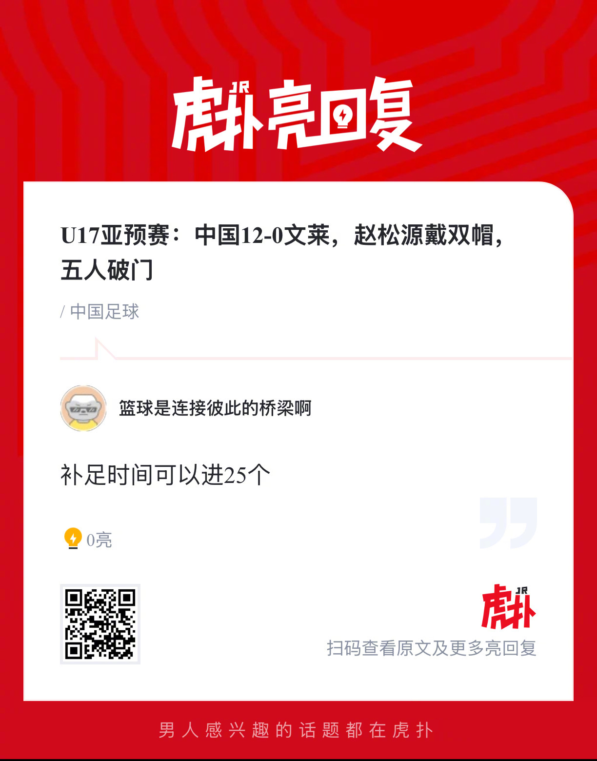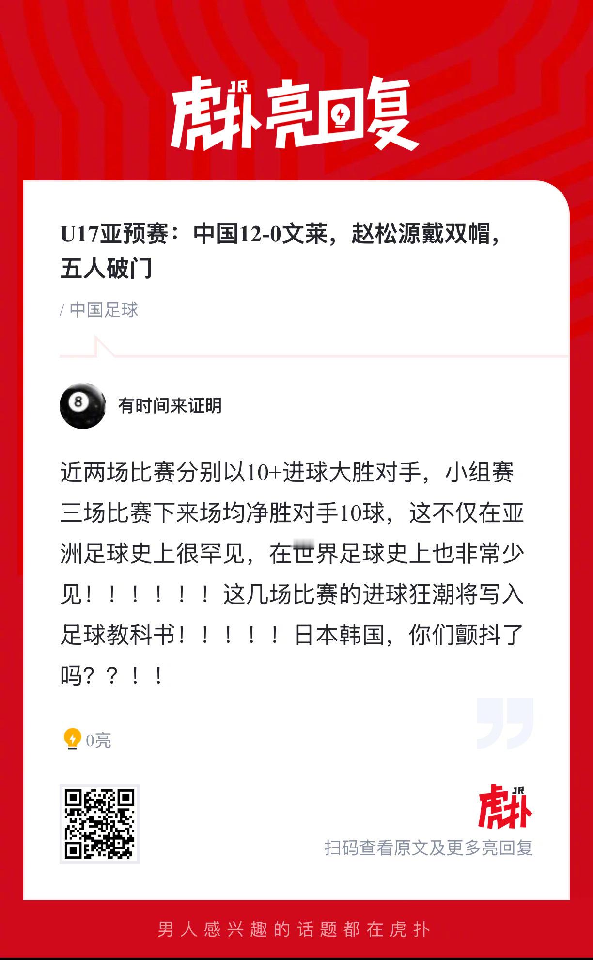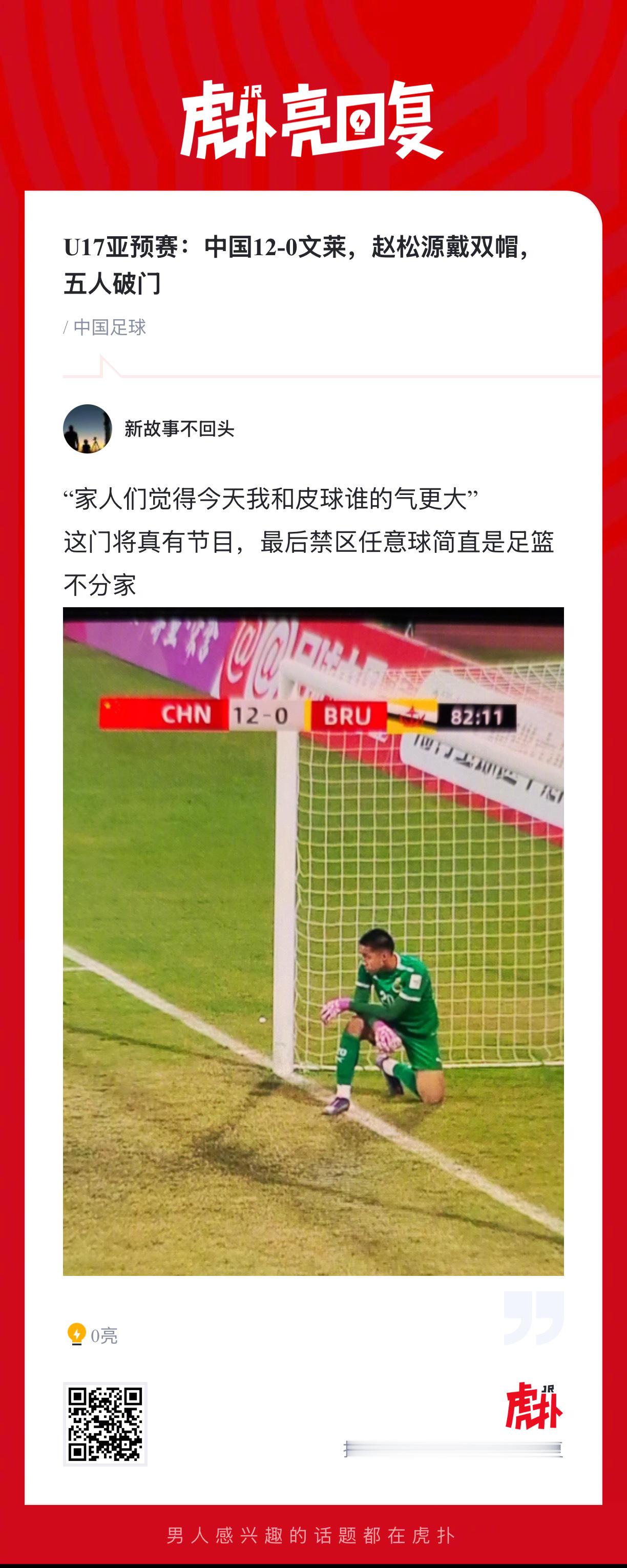 【U17亚预赛:中国12-0文莱,赵松源戴双帽,五人破门】