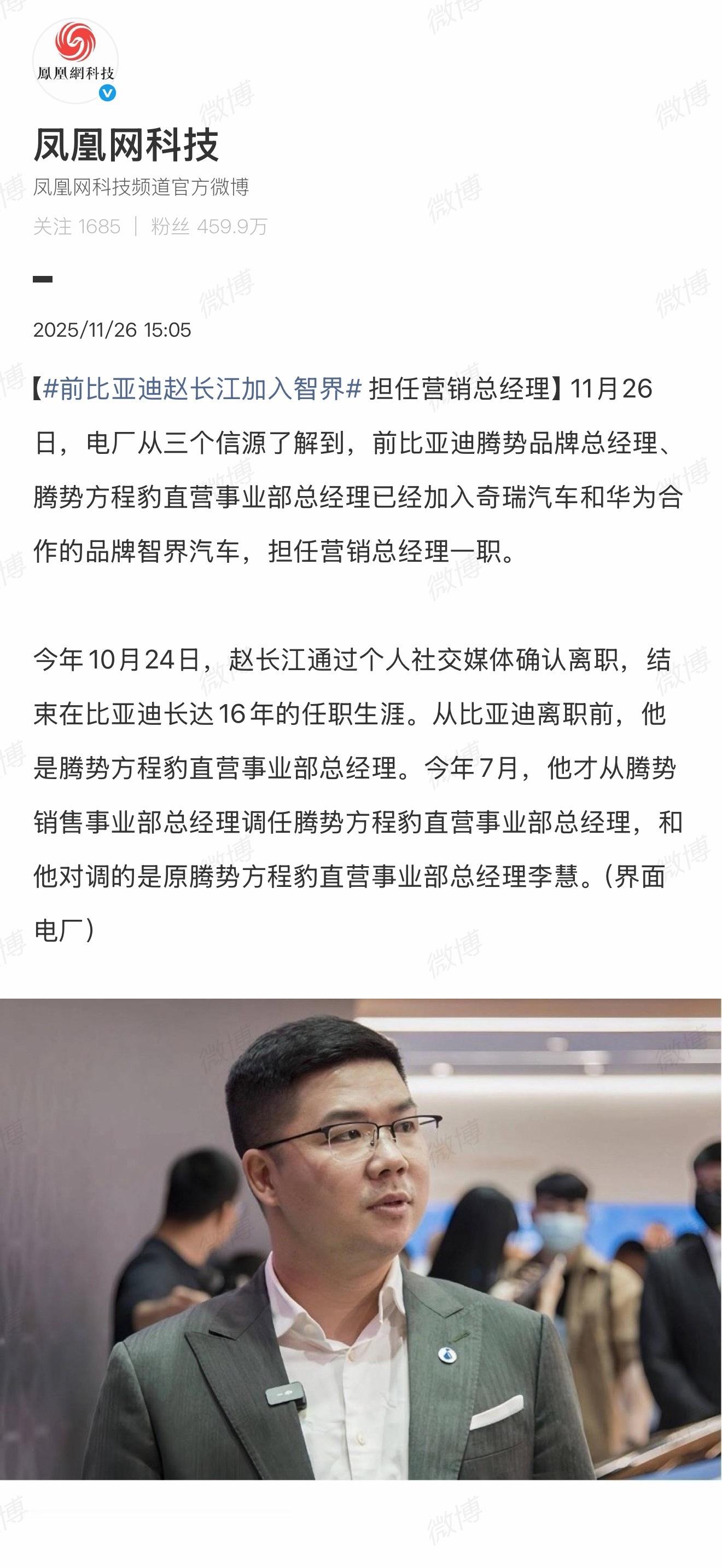 前比亚迪赵长江加入智界赵长江年轻有为,经历了比亚迪低谷到高峰,也有把腾势这个品牌起死回生的成功运作。前途一片大好~智界确实最近在几界中的声音弱了一些,销量也需要提一提,更重要的是需要新产品。可以期待一下。