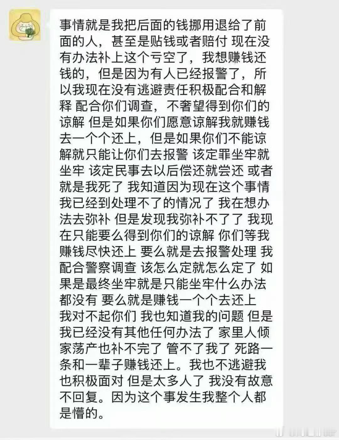 真的是绝了,什么钱都敢挪动400w,现在窟窿越来越大,后面不能躲起来了吧站姐涅槃 400万 北京