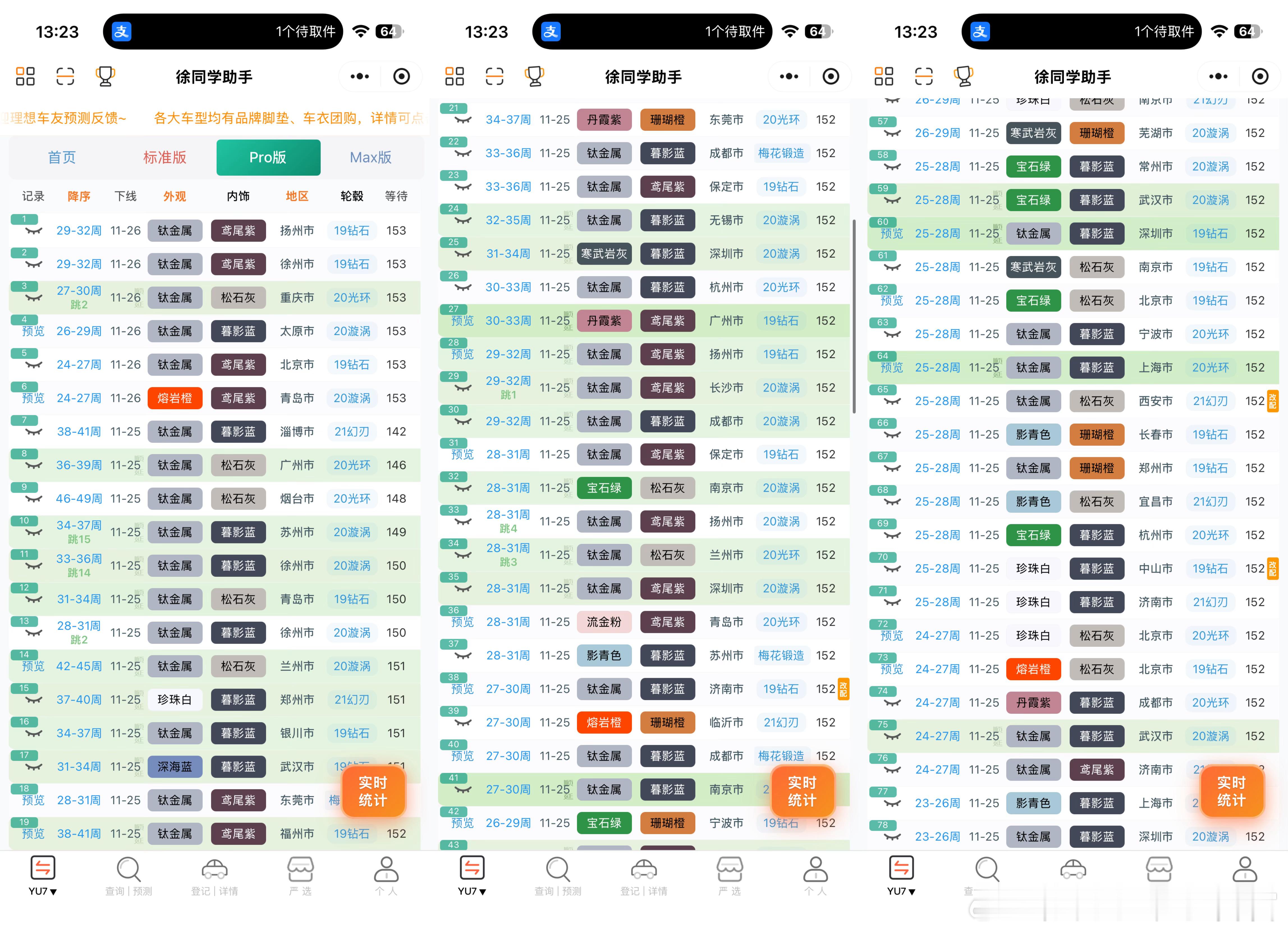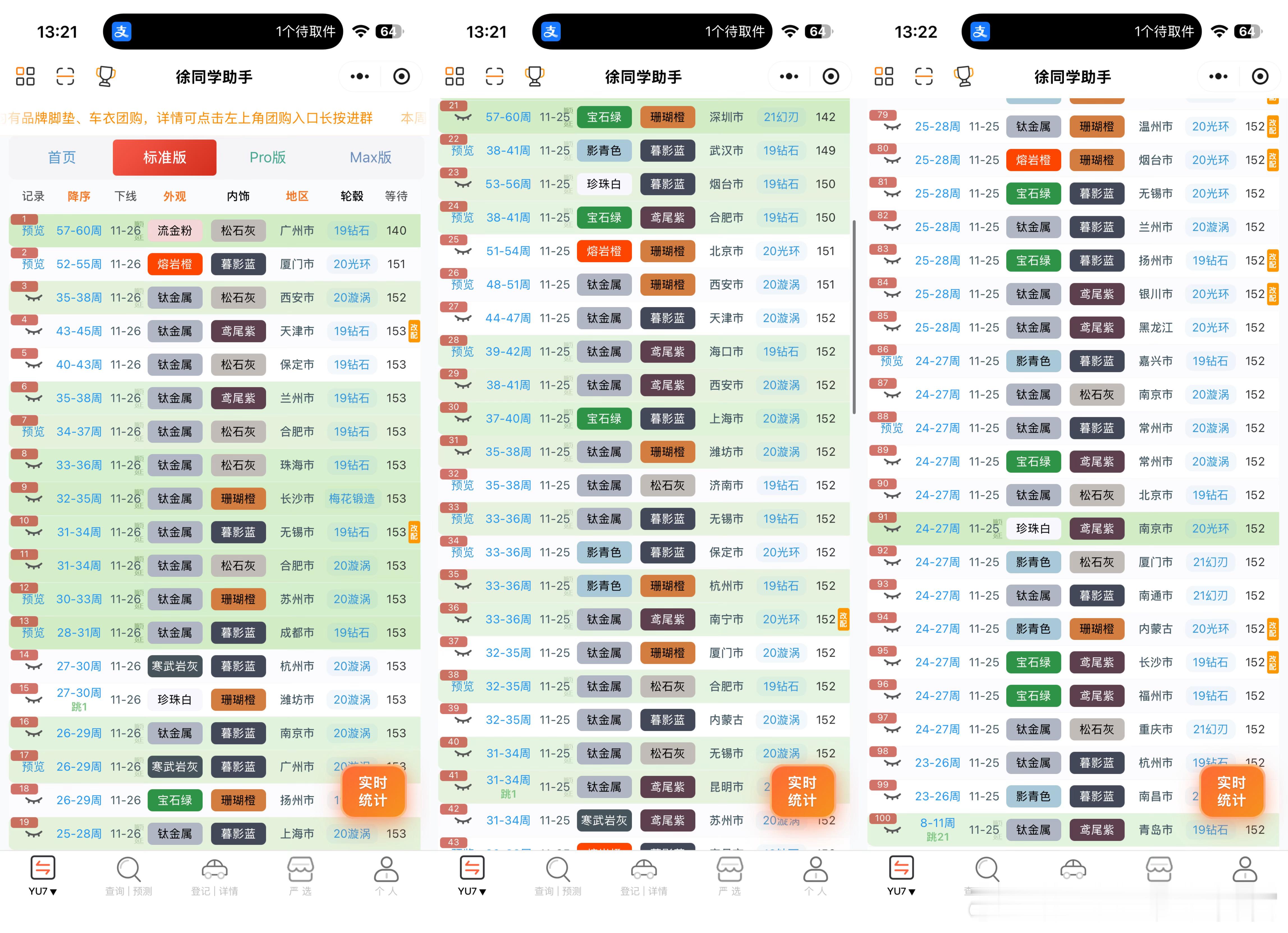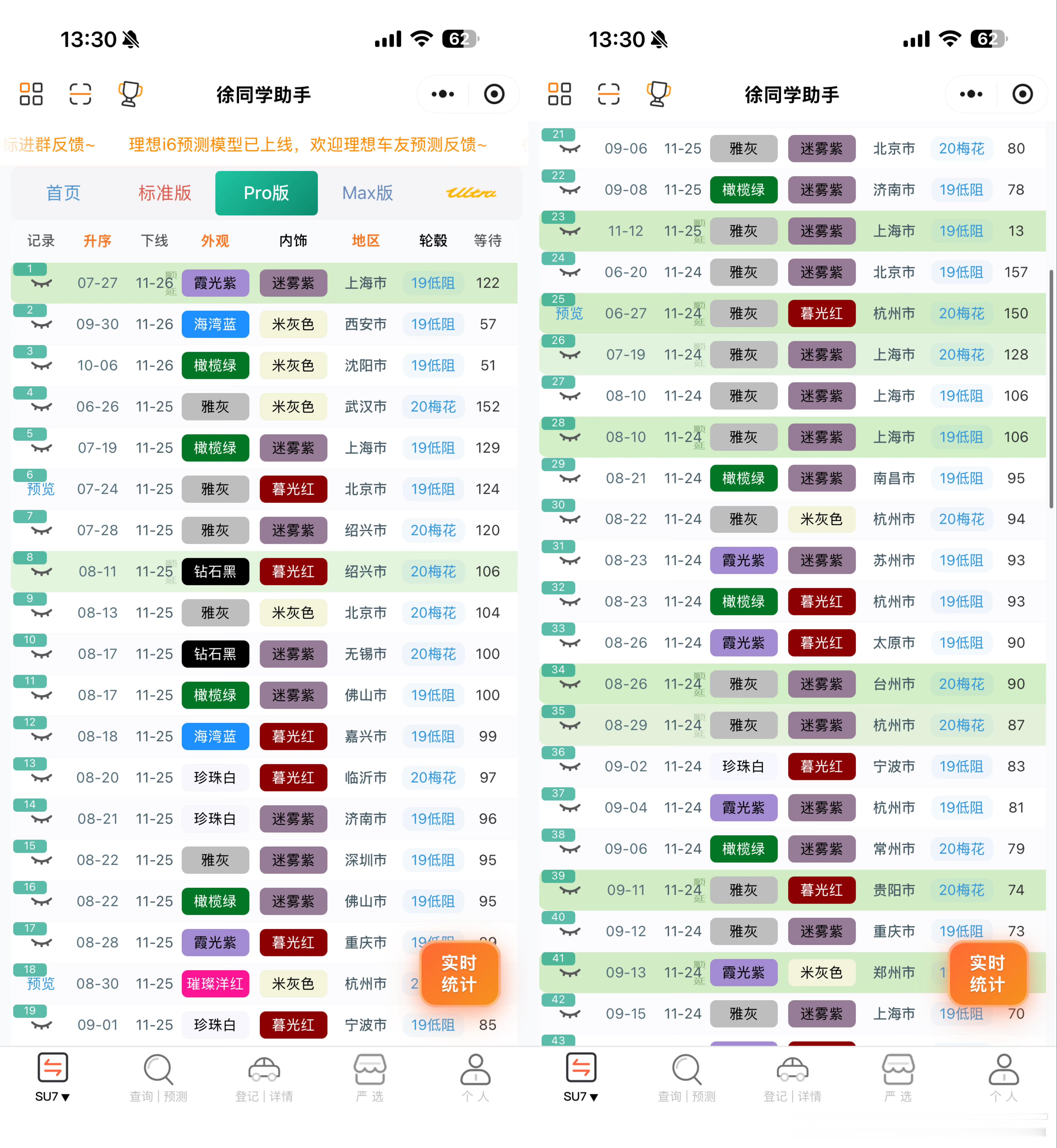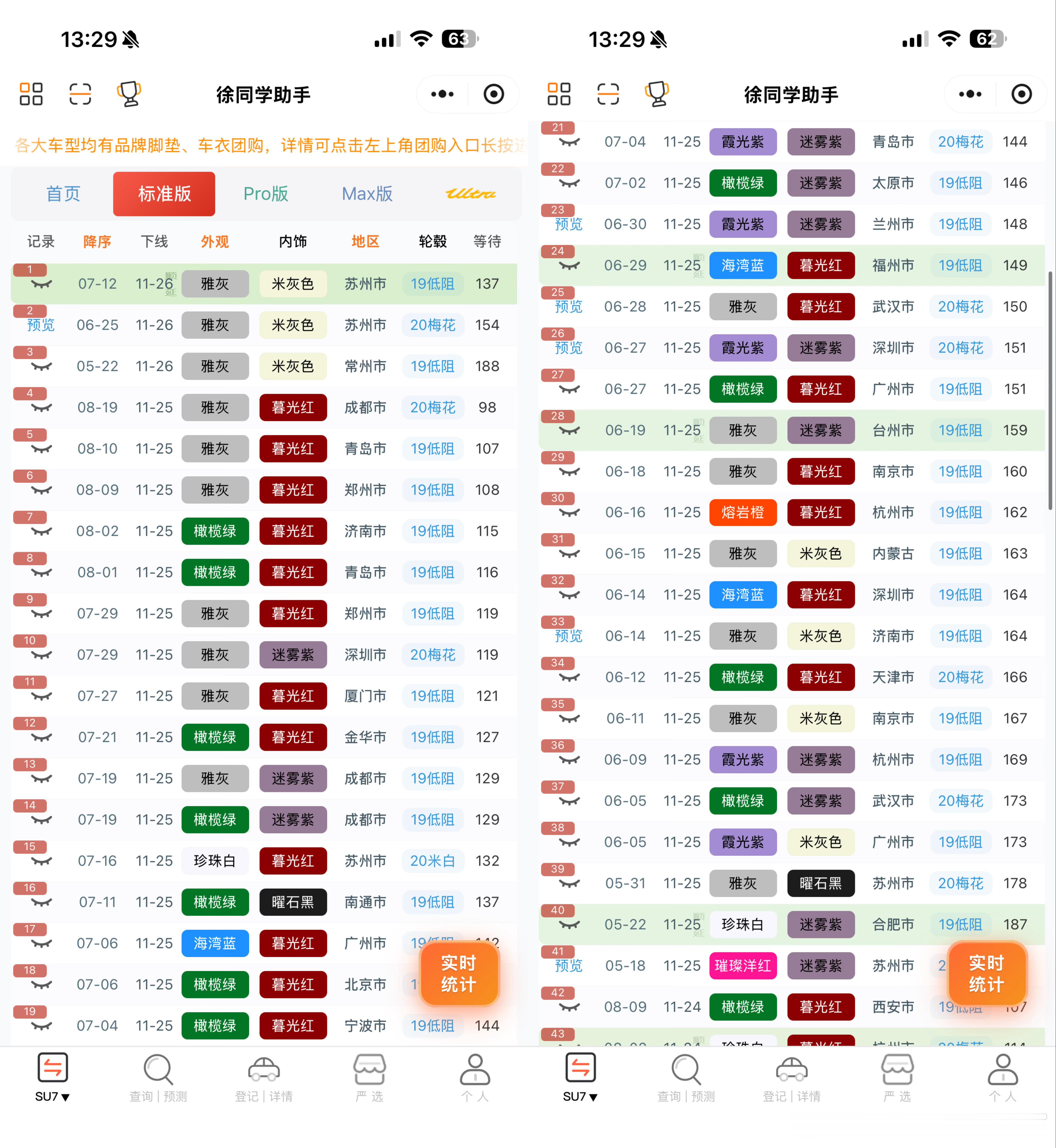 小米汽车(11月26日)下线实况小米交付权限好像升级了,刚有人给我看了下聊天记录,交付刚通知他的车进入前500台交付区间了,其他没交付的小伙伴也去群里问问呀看看是不是普遍都这样了,等你们好消息🌀YU7(据不完全统计)合计219台1️⃣标准:下线97台,大部队都是在顺延30周左右的了(初始周),北京该来一批了2️⃣Pro:下线73台,垫底的不少啊,24周的还在正常下线的,正常进度在26-27周3️⃣Max:下线49台,大部队27-30周左右的随时下线,月底30周交完是实现不了了🌀SU7(据不完全统计)合计65台1️⃣标准:下线38台,大部队6-7月,绿色来了一起2️⃣Pro:下线20台,订单不多了,一个月都能交付完3️⃣Max:下线7台,没啥车了4️⃣ultra:无更多关于小米汽车的最新资讯和深度解析,请参考【米车派】~徐同学助手汽场全开