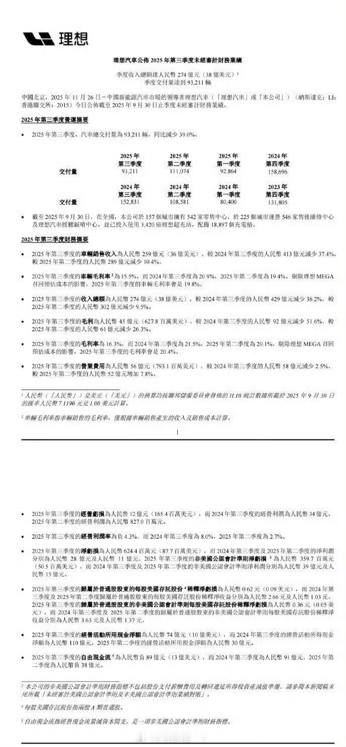 理想汽车Q3财报想子现在的优势真的不明显了。