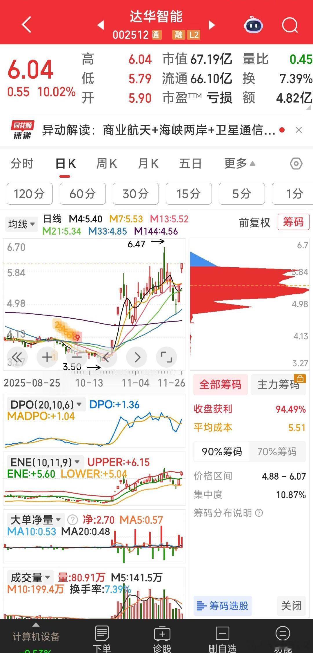 三选一,只选了开盘能进的达华智能。雷科防务和新华都没做。因没时间看盘,只能这样干