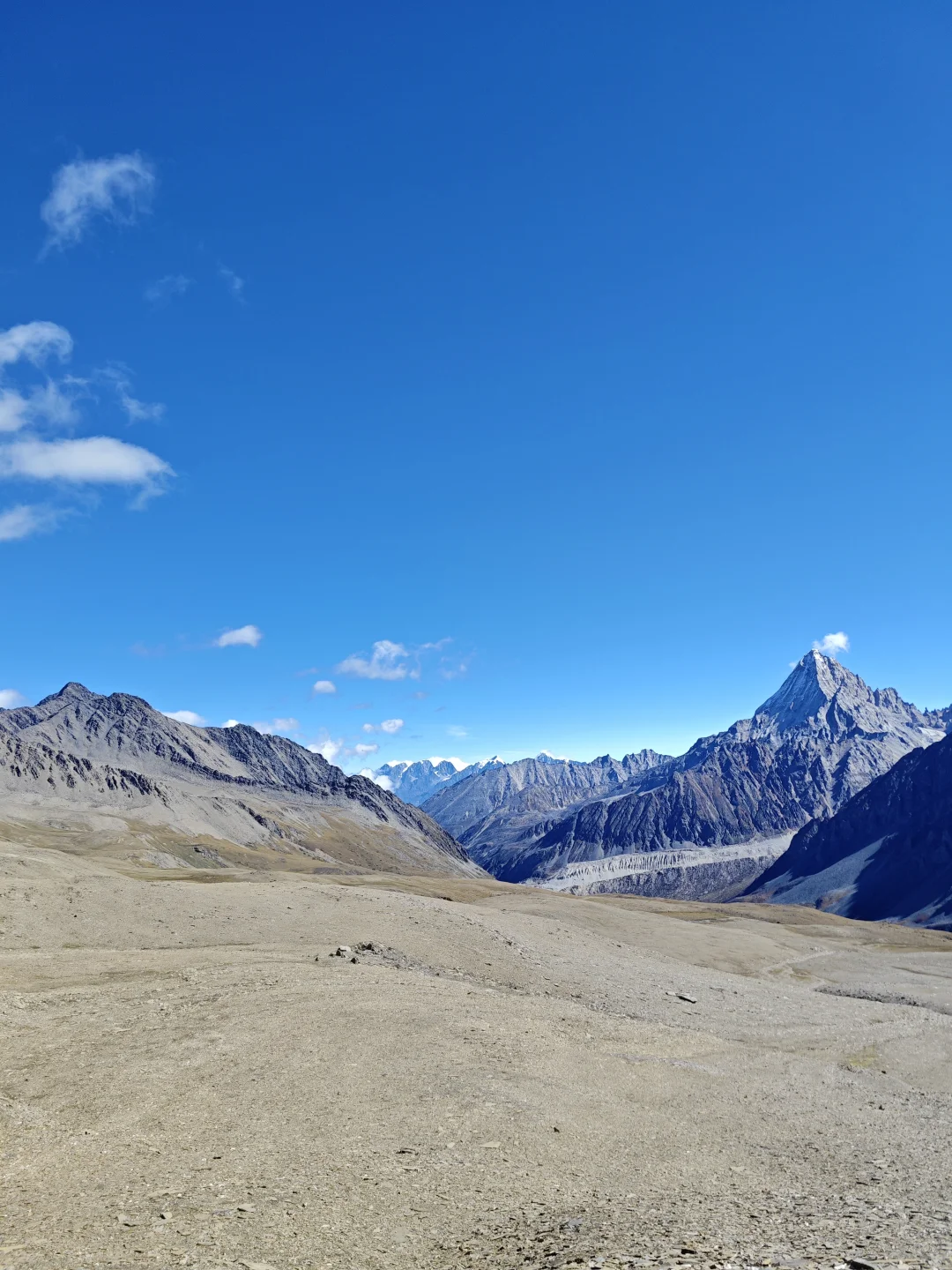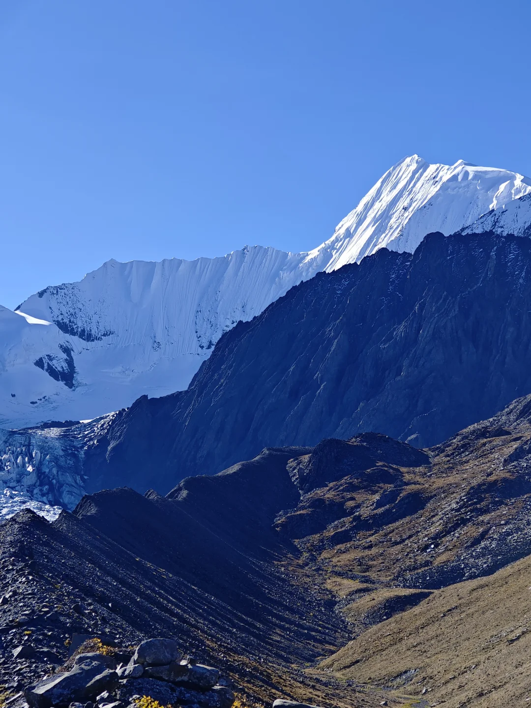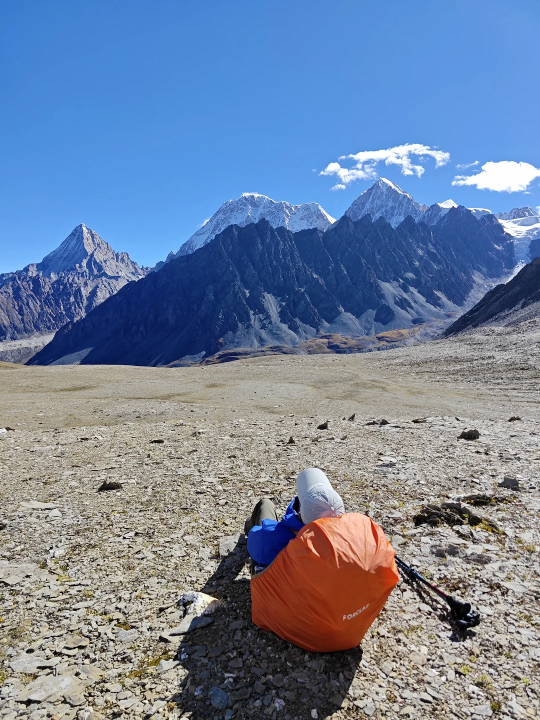 10月11日,贡嘎大环线之西一山脊线徒步的第三天。今天的行程是从勒多曼因冰湖出发,爬升翻越日乌且垭口,下到山脊线与山谷线岔路口后走山脊线,途经科西德,最终在备用营地扎营。全程约10公里,爬升约540米,下降约610米,耗时7小时。