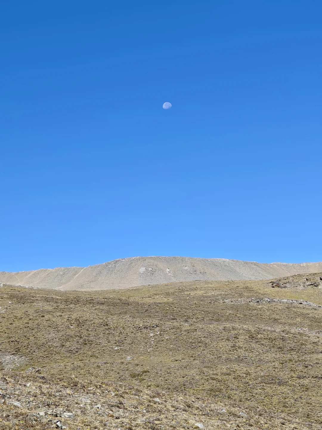 11点27分翻上日乌且垭口,海拔4930米。日乌且垭口是贡嘎大环线和西一山脊线至高点,也是我目前高海拔徒步到达最高的地方。翻过垭口下坡一公里路程便到了山脊线和山谷线岔路口,右转过溪是往西一山脊线,直行下坡是往漠溪沟。