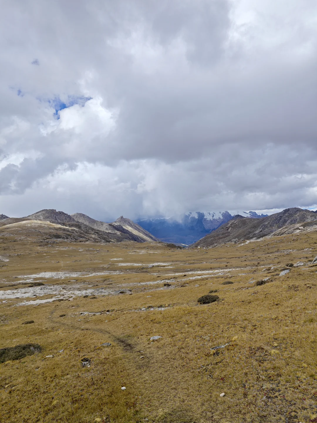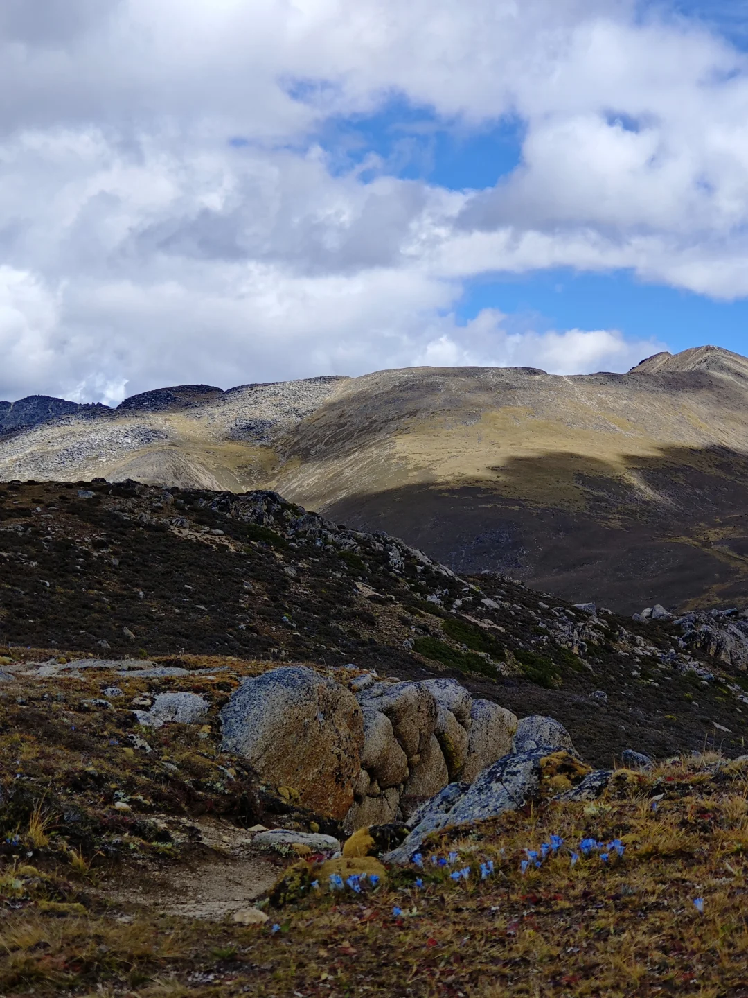 因今天的行程强度大,同行的三位队友昨晚商量好了动用钞能力找摩托把包驼到措娘卡营地,轻装上阵(前一晚在夯达营地询问了价格,比较实惠),所以他们收拾好东西先走了,结果等我追上他们时他们在整理包,原因是摩托司机觉得价格低了撂挑子不干了,后面价格也没谈拢。于是我们继续负重前行,走了一段两位队友询问了路上驼包摩托师父价格,最终还是决定动用钞能力把包驼到措娘卡营地,一位继续重装前行。