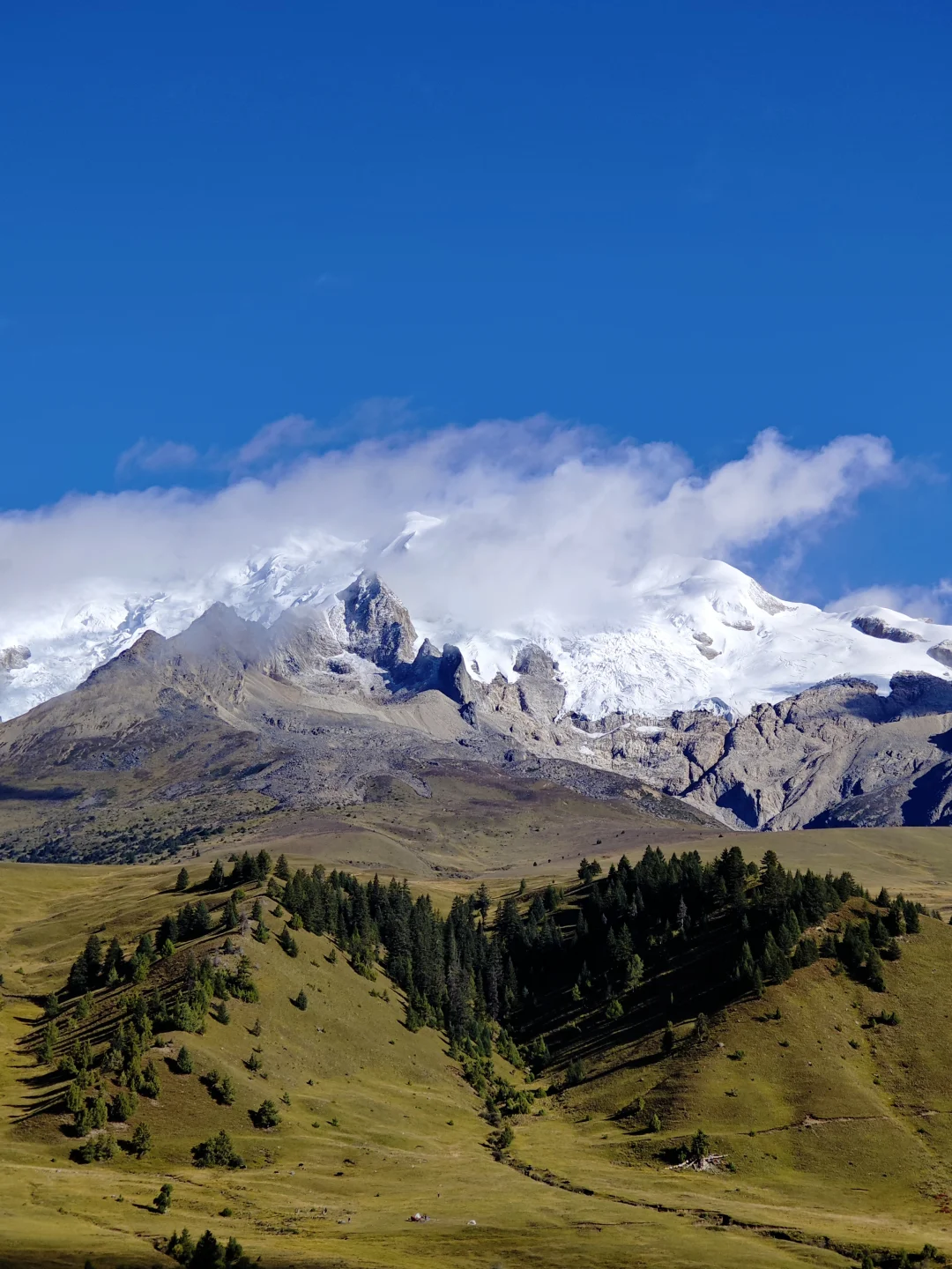 10月2日,这是格聂牧场+V线徒步的第三天,今天的行程是从夯达营地出发,经牧屋营地,一路爬升至4870米垭口,最终到达措娘卡营地扎营,全程约20公里,爬升约1060米,下降约190米,耗时8小时56分钟。