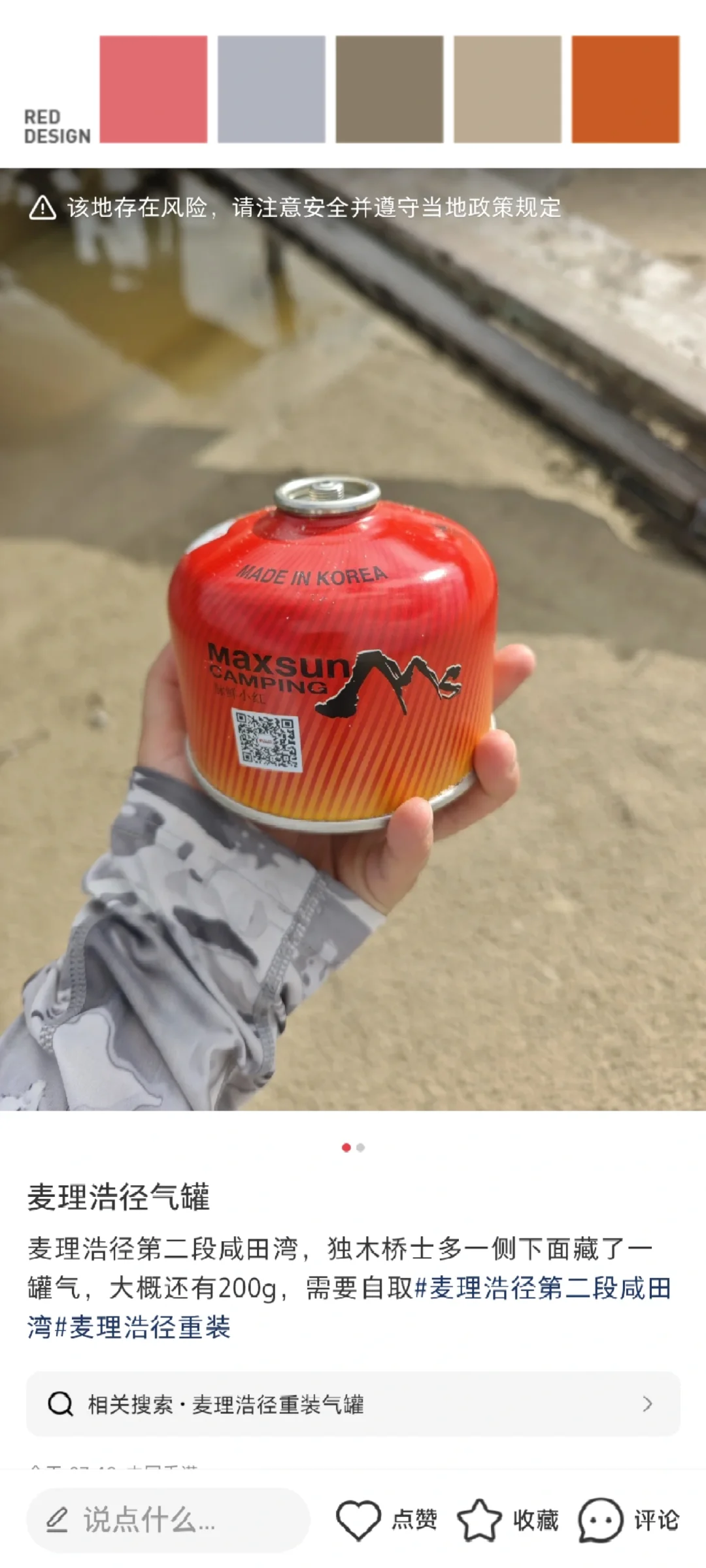 总是能刷到一些驴友在徒步即将结束或出山后,将没用完又带不走的气罐随意丢在山野,藏在闹市区、地铁站、汽车站、火车站等人流密集区域,美其名曰留给有需要的人(图2~9),也能在徒步途中或营地看到随意丢弃的气罐。对于这种行为我是不能理解的,作为一个户外爱好者竟然不能正确对待这个东西,也无法正确处理这东西,可见如今的户外参与者素质和认知水平堪忧。