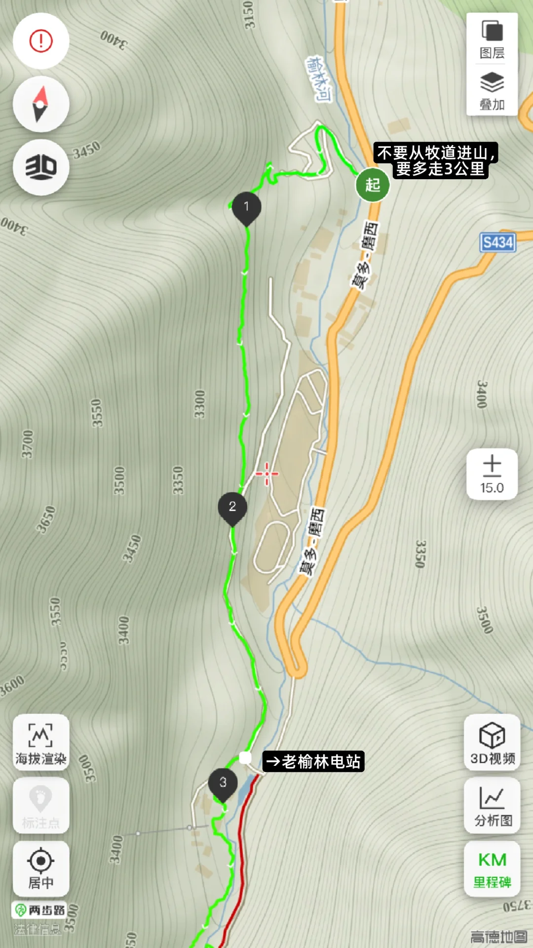 之前老榆林进山口被封,徒步圈闹得沸沸扬扬,想尽办法找进山的路线,都说要绕路,而且要趁早。我就从两步路找了一条从牧道进山的路线,天还没亮就从市区打车到起点,偷偷摸摸摸黑进山,结果走到老榆林电站,大家还是从老地方绕进去,人多的很,而我傻乎乎的多走了3公里。[失望R]