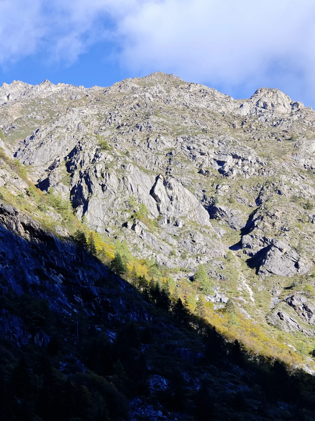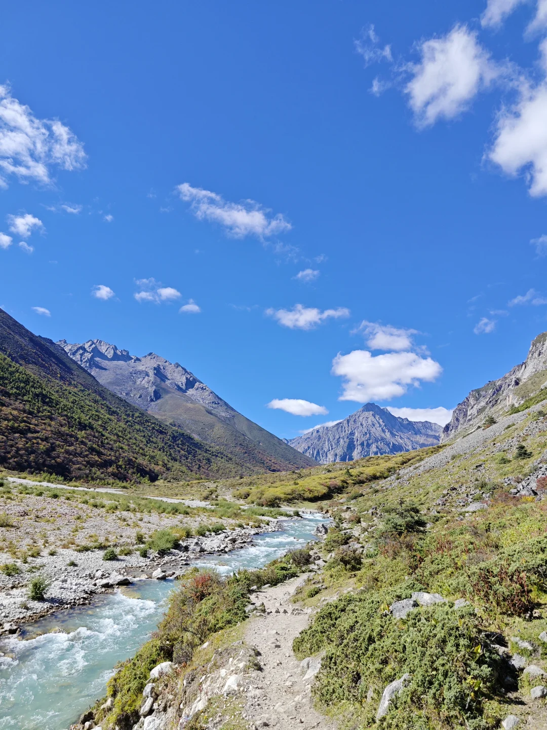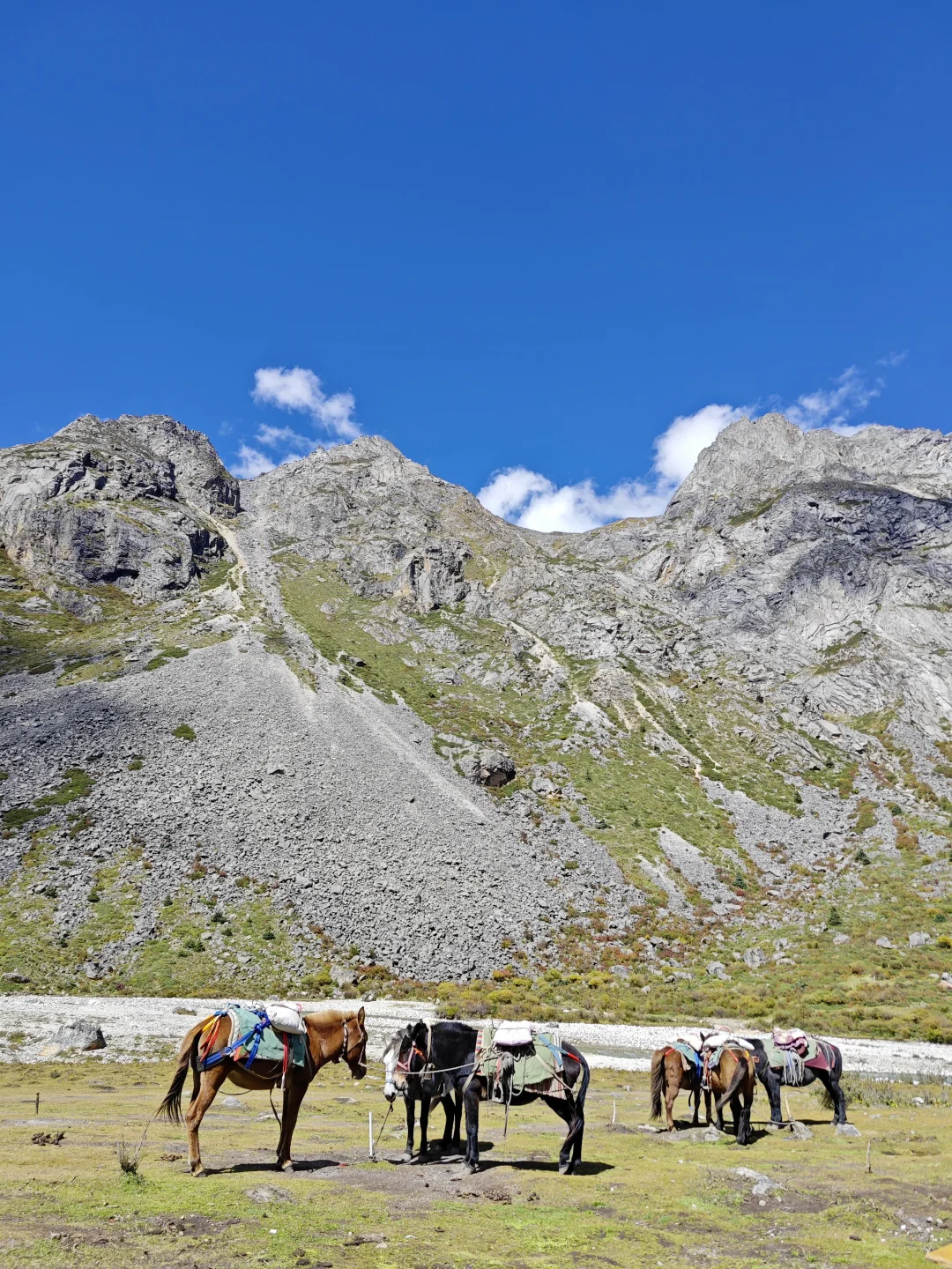 今天的路线整体都是缓坡爬升,路况清晰良好,无危险及复杂路段,有少量积水路段。路程较长,如果不想走路,从老榆林电站绕进来可坐车到格西草原,少走5公里;格西草原有马帮到两岔河营地、下日乌且营地、上日乌且营地和勒多曼因冰湖营地。