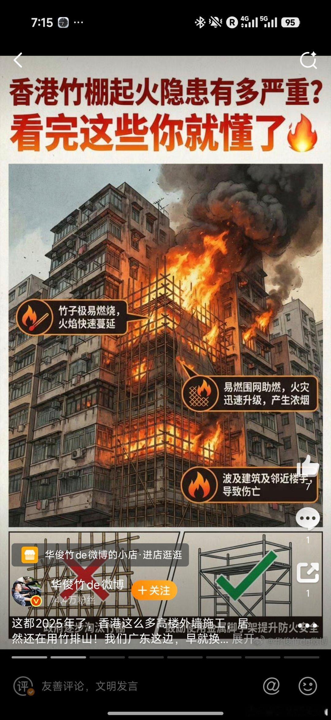 香港火灾已致40人遇难我在香港最疑惑的事情之一,就是为啥一个发达地区到现在仍在用竹子脚手架,这次教训真的太惨痛了,希望能彻底改变这个行业