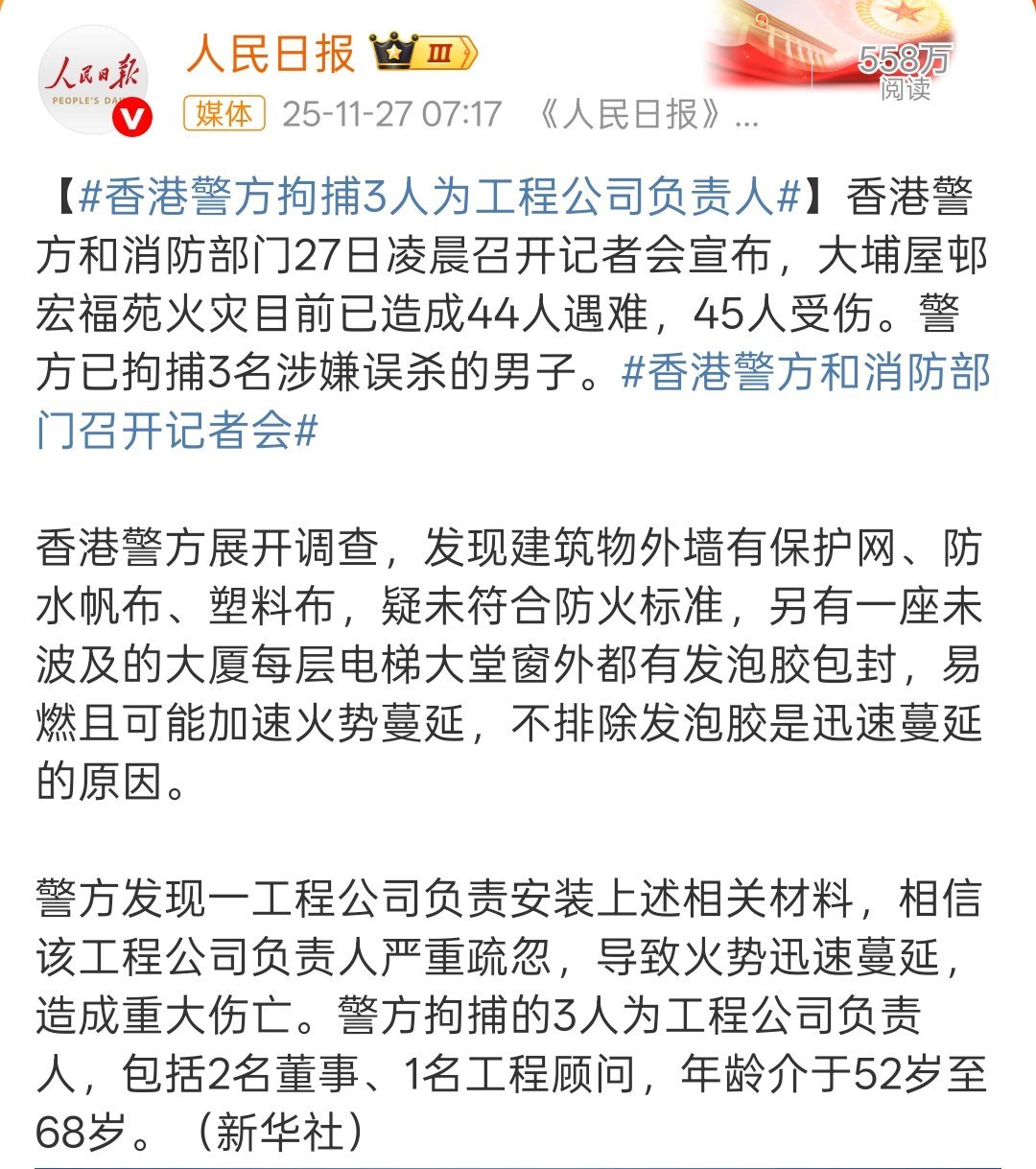 香港火灾已致44人遇难看到最不想看到的消息,愿逝者安息