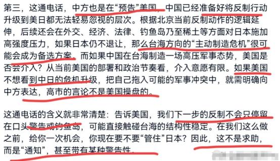 还是德媒看的透彻!德媒表示,中美这一次通话,根本不是中国求着美国约束日本,而是中国在警告美国,日本已经进入失控范围,美国不管,中国自有办法对付! 11月26日,德媒刊文表示,中国真正担忧的根本不是日本,而是日本在美国认为“可控”的范围之外冒险升级。中国需要让华盛顿明确意识到,高市正在把地区推向失控,北京已经不再把这视为一场普通的外交摩擦。 这话得从日本首相高市早苗最近的疯狂举动说起。这人才上台一个月,就把地区局势搅得鸡犬不宁。11 月 7 日在国会公然放话,说 “台湾有事” 可能算日本的 “存亡危机事态”,暗示到时候日本能以 “集体自卫权” 的名义动手介入。 这话可不是随便说说,要知道这是 1945 年日本战败后,头一回有首相在正式场合把 “台湾有事” 和武力介入绑在一起,等于直接对中国亮了刀子。 更过分的是,高市不光嘴上喊,手脚也没停。刚上台就推动废除武器出口的限制,之前只能卖救援、扫雷这类非杀伤性装备,现在连能直接打仗的武器都要往外卖。 11 月还刚把 “爱国者” 防空导弹返销给美国,这是日本松绑武器出口后第一次卖杀伤力武器。一边对着台海喊打喊杀,一边加速扩军卖武器,明眼人都能看出来,这已经不是普通的外交挑衅了。 中国的反应也彻底打破了惯例。以前中日闹摩擦,顶多是外交部召见大使、提出抗议,但这次完全是 “多部门联动” 的硬手段。 外交部连续两天在记者会上拿《开罗宣言》说事,直指高市踩了 “永不可逾越的历史红线”。 要知道 1943 年的《开罗宣言》早就白纸黑字写着台湾要还给中国,1945 年的《波茨坦公告》又重申了这一条,日本自己签的投降书里也认了账。现在高市敢说 “台湾有事”,等于把战后国际法都踩在脚下。 更关键的一步是中国把这事捅到了联合国。11 月 21 日,中国常驻联合国代表傅聪直接致函秘书长古特雷斯,把高市的言行一条条列出来,明确说要是日本敢武力介入台海,那就是侵略,中国肯定会行使自卫权。 联合国秘书长发言人当天就回应,重申遵循第 2758 号决议,也就是认台湾是中国的一部分。这种把双边摩擦升级到国际法层面的操作,在中日关系里是头一回,明摆着是不把日本的行为当 “外交纠纷” 看了。 就在这节骨眼上,中美通了电话。德媒看得明白,中国根本不是求特朗普管日本,而是带着 “最后通牒” 去的:我们就想确认两件事,第一,你美国还能不能管住你的盟友? 第二,你是不是要纵容日本越过你自己画的台海底线?要知道美国一直对日本搞 “战略模糊”,既想让日本当牵制中国的棋子,又怕它真把台海搞炸了拖自己下水。但现在高市的节奏,已经不是美国能轻松拿捏的了。 有个细节很说明问题,11 月 25 日特朗普刚和高市通完电话,记者问起涉台言论,高市只敢说 “细节不便透露”,压根不敢正面回应。 而就在几天前,美军把部署在日本山口县的 “堤丰” 中程导弹悄悄撤走了。这说明美国自己都在往后缩,心里也清楚高市在玩火。中国就是要抓住这点,逼着华盛顿表个态:要么你就把日本的缰绳拉紧,要么就别怨我出手收拾局面。 中国真正担心的,从来不是日本那点实力,而是日本在 “美国可控范围外” 的冒险。高市现在的玩法,已经超出了美国的预期 —— 美国只想让日本当 “棋子”,没打算让它当 “棋手”,更没准备好因为日本和中国硬碰硬。 毕竟现在美国在俄乌、巴以两个战场都耗着精力,根本没底气再在台海开第三场冲突。中国就是要让华盛顿看清楚:高市正在把你也拖进火坑,你不管,我就得自己灭火,到时候别嫌我动作大。 其实从日本国内的反应也能看出来,高市这套根本不得人心。11 月 21 日,东京民众举着标语围在首相官邸外抗议,说 “感觉日本在重走过去的错误”。 前首相鸠山由纪夫都忍不住发帖警告,说台湾问题是中国内政,日本不该插手。连美国专家都骂这是 “极其严重的外交失策”,戳中了中国的核心安全红线。 说到底,中国这次的操作是 “先礼后兵”,也是给美国留面子。把高市的行为上升到 “潜在敌对行为”,把证据递到联合国,再和美国摊牌,每一步都占着理。 这就像告诉特朗普:不是我们要搞事情,是你的盟友要搞事情,你管不管?不管我们就上了,到时候别后悔。 德媒的厉害之处,就是没被 “中美博弈” 的表象迷惑,看明白了核心矛盾:失控的盟友比对手更危险。美国要是还抱着 “既利用又纵容” 的心态,最后肯定会被日本拖下水。 而中国这一系列动作,既是警告美国,也是在给地区局势 “踩刹车”—— 毕竟真打起来,谁都没好果子吃。但要是日本真敢越过红线,中国说的 “自有办法对付”,绝不是空话。