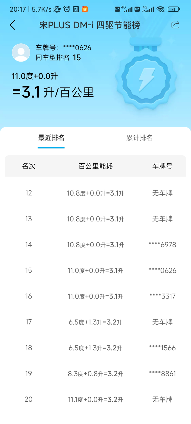 晒个四驱的油耗 表显14多,实际估计更高,原因吗,一来开的比较快,二来空调制冷来到了最大。这个油耗求吊打😂 把最省的一次也放上来