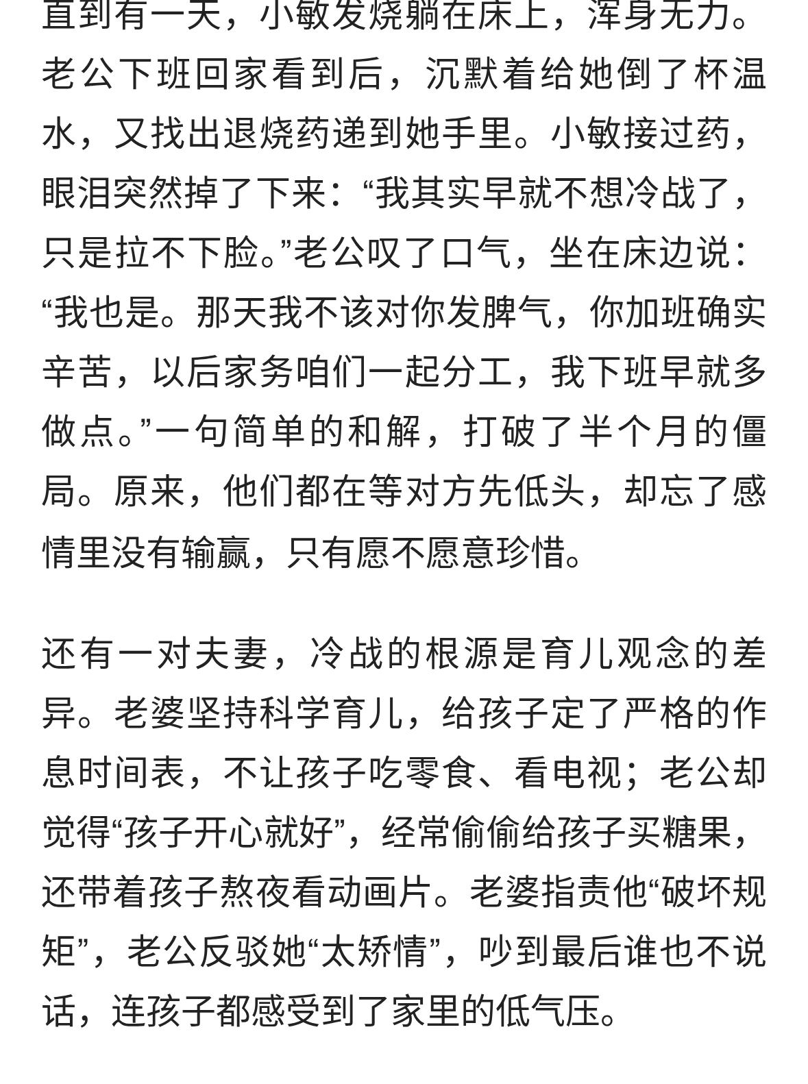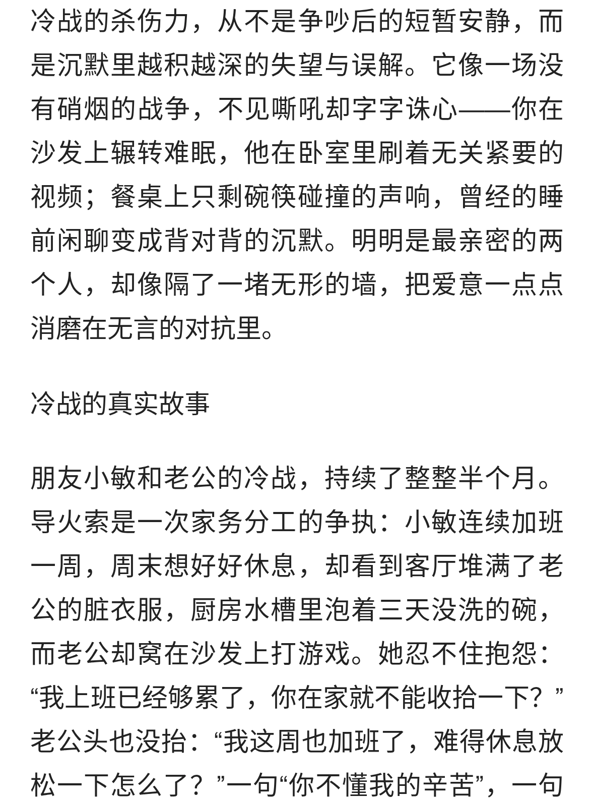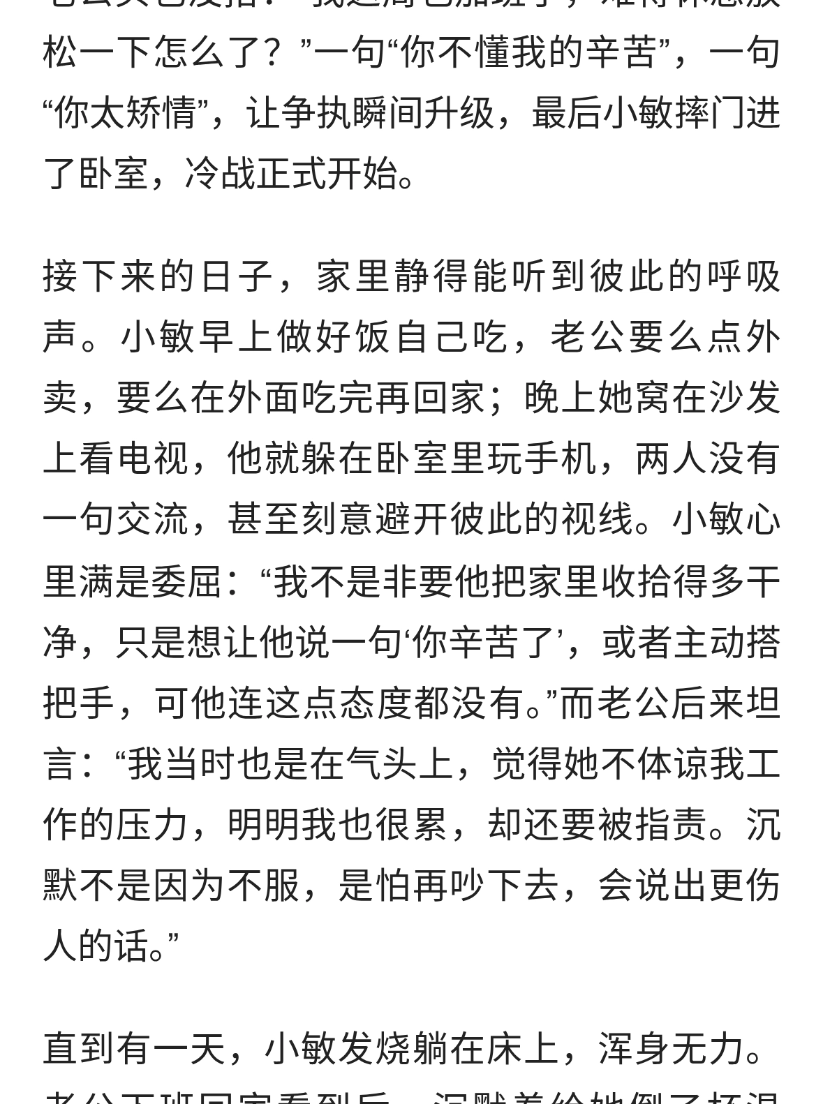 夫妻冷战太常见,我来分享些破冰办法。上次我朋友两口子冷战,屋里安静得可...