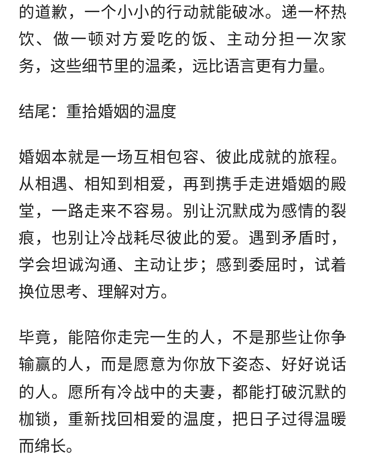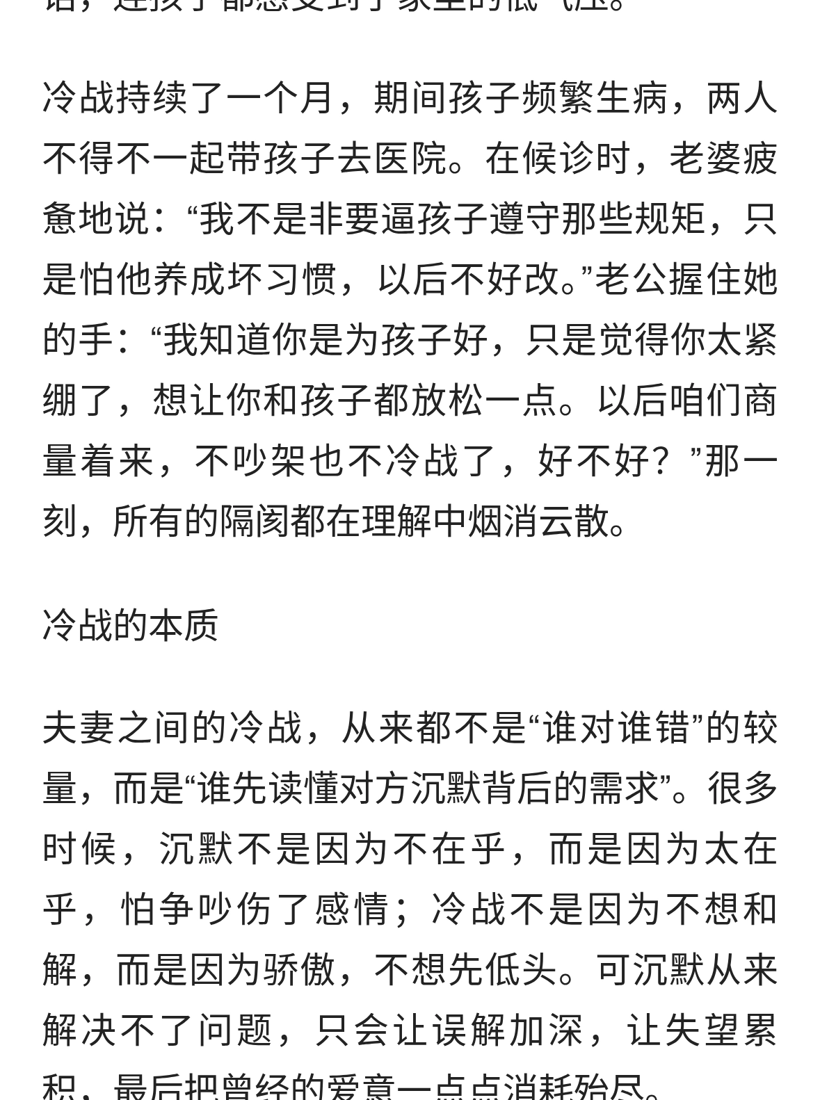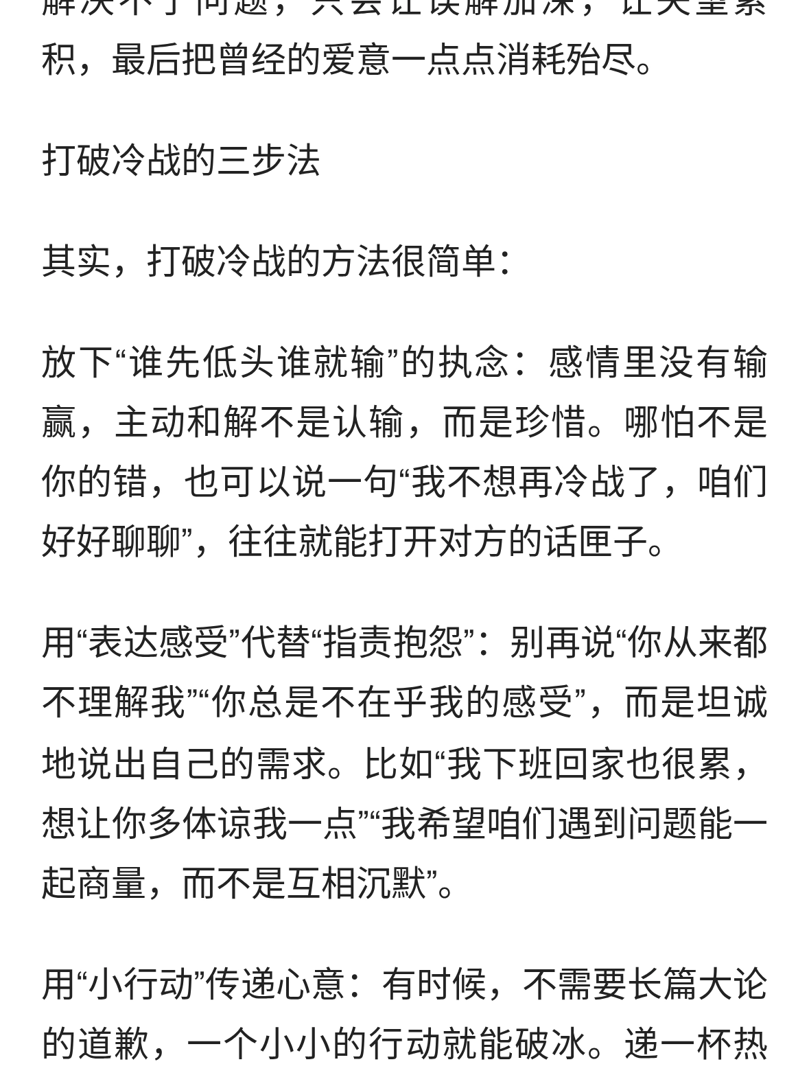 夫妻冷战太常见,我来分享些破冰办法。上次我朋友两口子冷战,屋里安静得可...