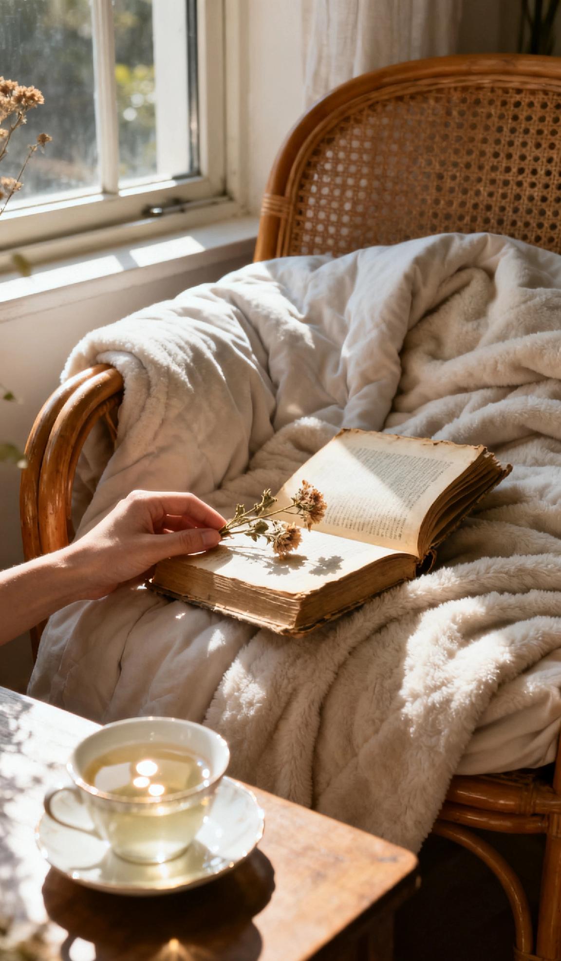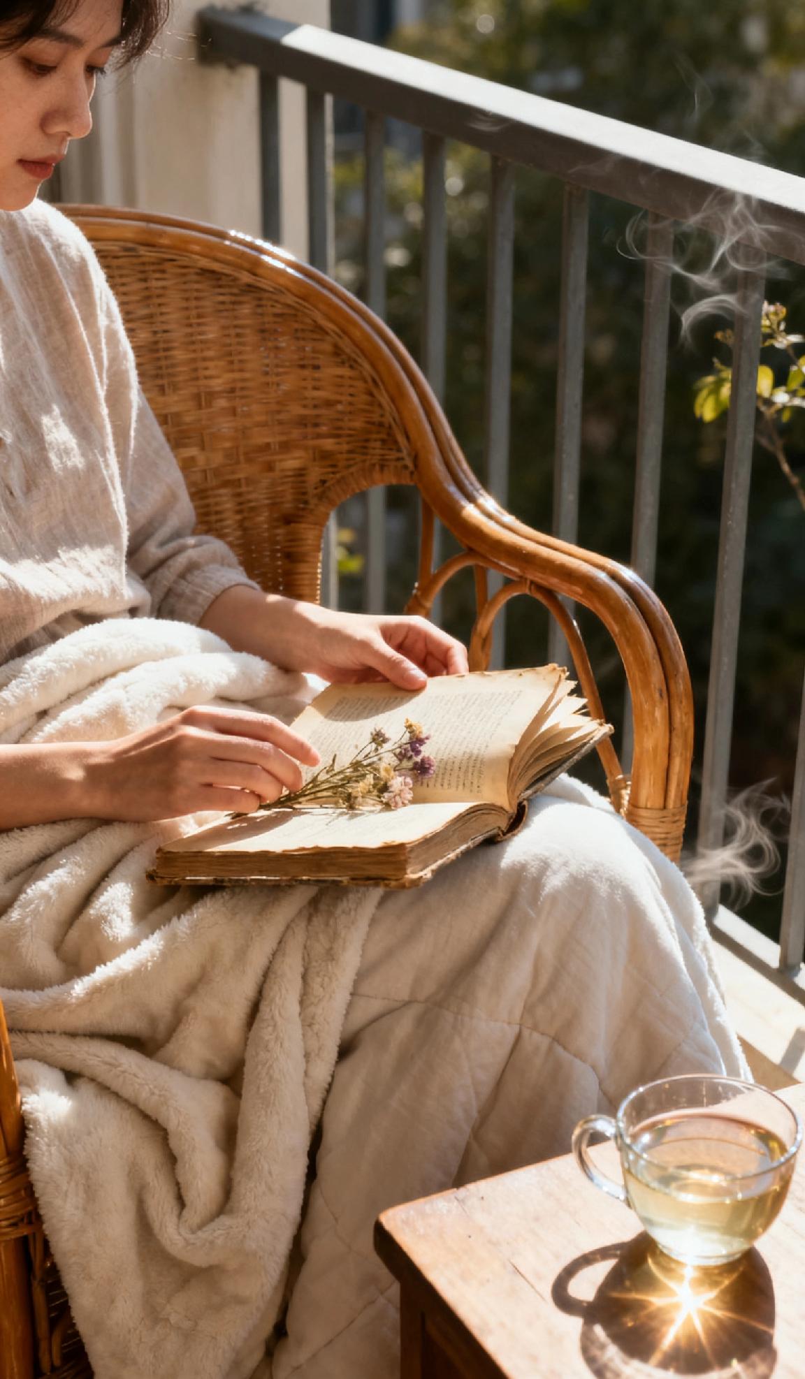 分享一件幸福感小事午后赖在藤椅上,晒透的被子搭腿间暖乎乎,泡杯淡茶搁手边,香慢悠悠飘着。翻本旧书没逐字细读,夹的干花蹭过指尖,风漫进来掀两页纸,光斑晃在茶盏上晃悠悠,日子松松散散,满是软乎乎的惬意。秋日喝茶仪式感 生活仪式感茶 躺椅上的慢生活