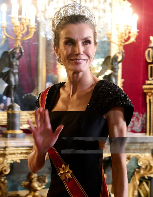 西班牙国王夫妇出席欢迎宴会,莱蒂齐亚穿礼服戴皇冠是高贵,就是瘦得有点儿弱不禁风!11月26日费利佩国王与莱蒂齐亚王后在王宫为到访的德国总统夫妇举行欢迎宴会,让人没想到的是原本就很瘦的王后陛下选择一件黑色礼服裙,让原本就身材纤细的王后显得更瘦了。 这件黑色礼服裙是修身款式,虽说不是什么新款,但上身效果瘦身效果超好,只是王后陛下是一个很自律的女人,尽管生下两个公主,但一直保持着少女身材,新造型全靠皇冠的贵气撑起气场!