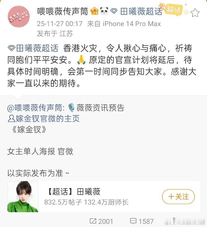 田曦薇嫁金钗延迟官宣田曦薇嫁金钗官宣延后 田曦薇古装适配《嫁金钗》!官宣虽迟,粉