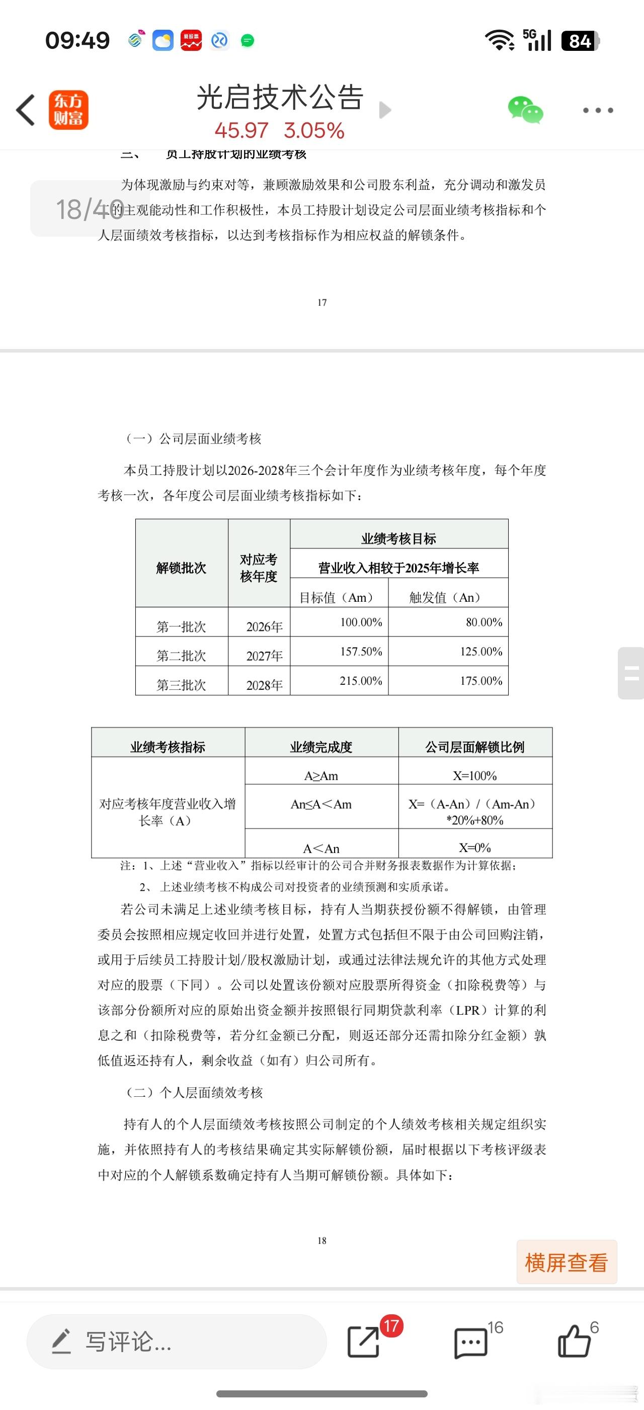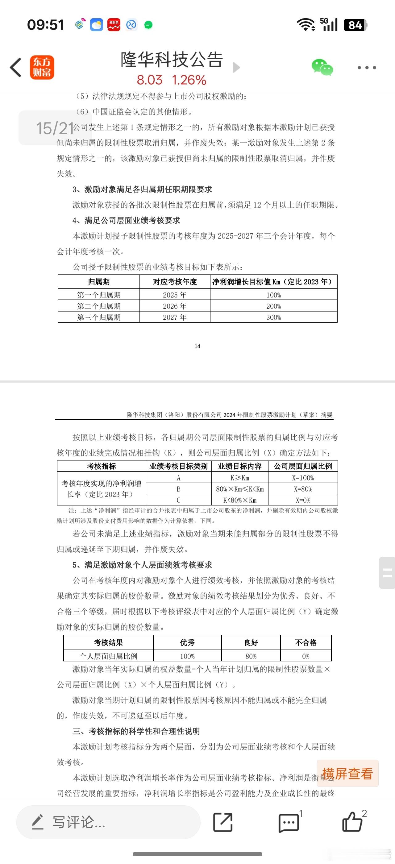 比较有意思的一个资讯,光启技术昨晚推了一个股权激励方案。。增速设定也很高。不过跟隆华科技不一样的是。光启技术增长设定的是营收,隆华科技设定的是利润。光启技术设定明年营收比今年增长100%,27年157.5%,28年215%再回顾一下去年隆华科技的股权激励是25年利润比23年增长100%,26年增长200%,27年增长300%谁的更有信心,智者见智了。。资本市场对于小盘股更在意利润,对于大企业更注重营收增速好像两个设置都挺合理的。。当然这里做比较是为了证明隐身材料的高增长得到行业大佬的验证,隐身材料得成长性毫无疑问在军工材料领域时独一格的战略材料。一边是老美的隐身战机表层锈迹斑斑,一边是国内更多隐形战机批量入列。。隐身材料的需求量高增长应该可以预期。。可能市场会因此重新交易这个股权激励带来的新预期。。。