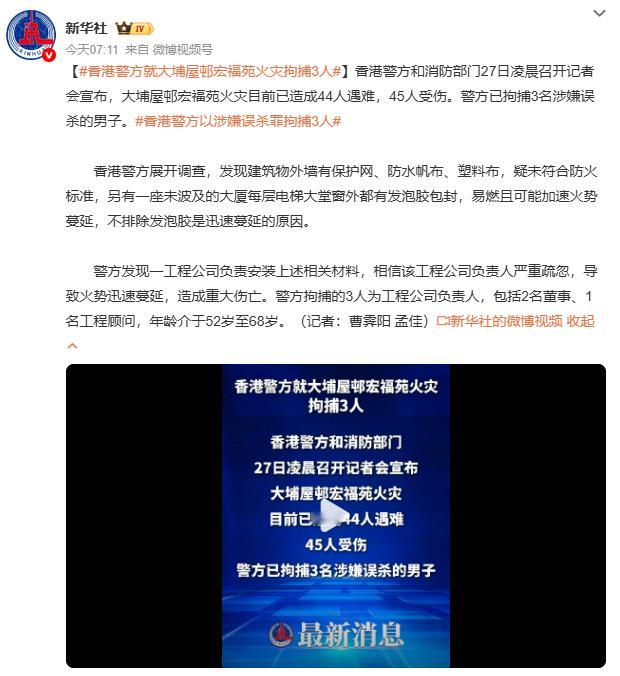香港火灾已致44人遇难3名工程负责人被拘,误杀罪指控直指外墙材料违规。当发泡胶成为“助燃剂”,当防火网形同虚设,这场火灾早已超越“意外”范畴。刑事立案不是终点,而是追问:多少隐患在监管盲区潜伏?严惩责任人,更要堵住制度漏洞,别让悲剧重演。