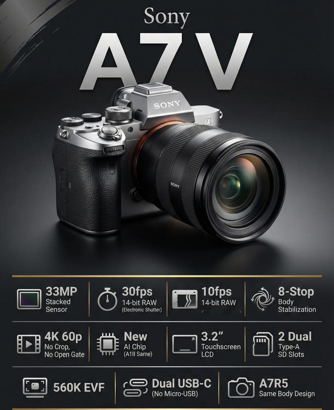 索尼新品发布会将于12月2日举行,本次主要产品为索尼A7M5。 据爆料,A7M5将搭载全新3300万像素部分堆栈式传感器,8级防抖,4k60无裁切拍摄。
